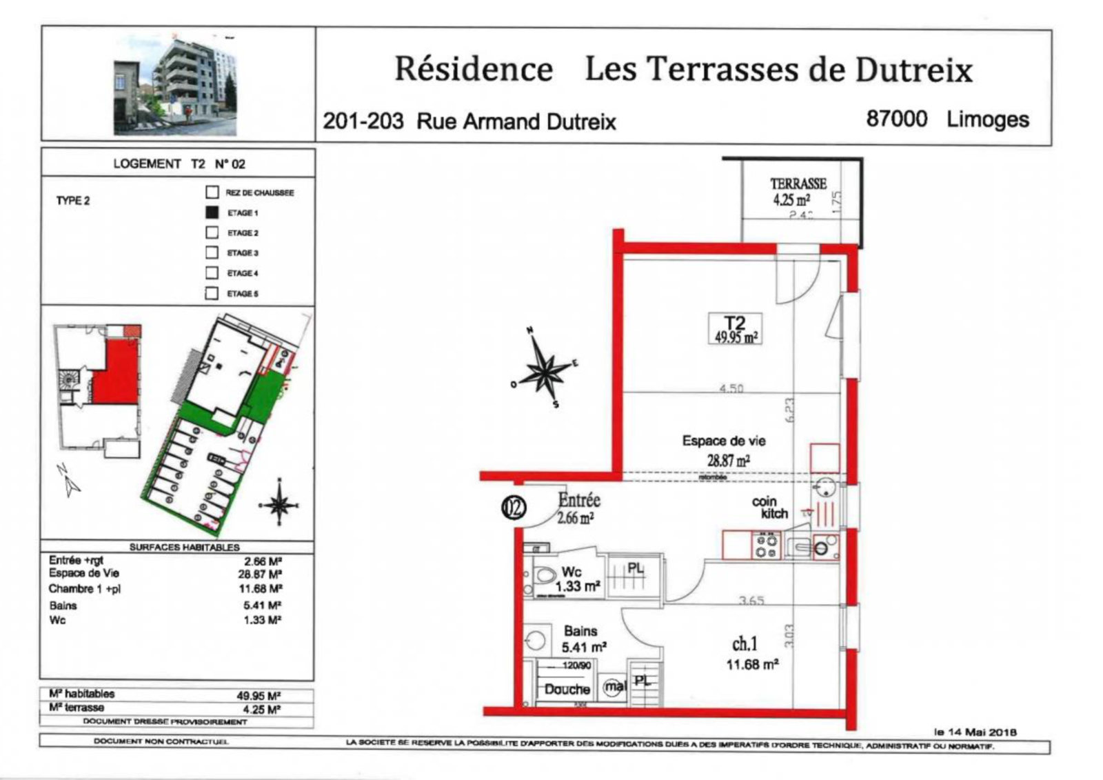 Cet appartement est équipé d'un chauffage au gaz, d'un ascenseur dans la résidence, d'une vue dégagé, de faibles charges de copropriété et bien sur de toutes les garanties décennales sur l'ouvrage. La livraison du bâtiment est prévue au 31/12/2019.