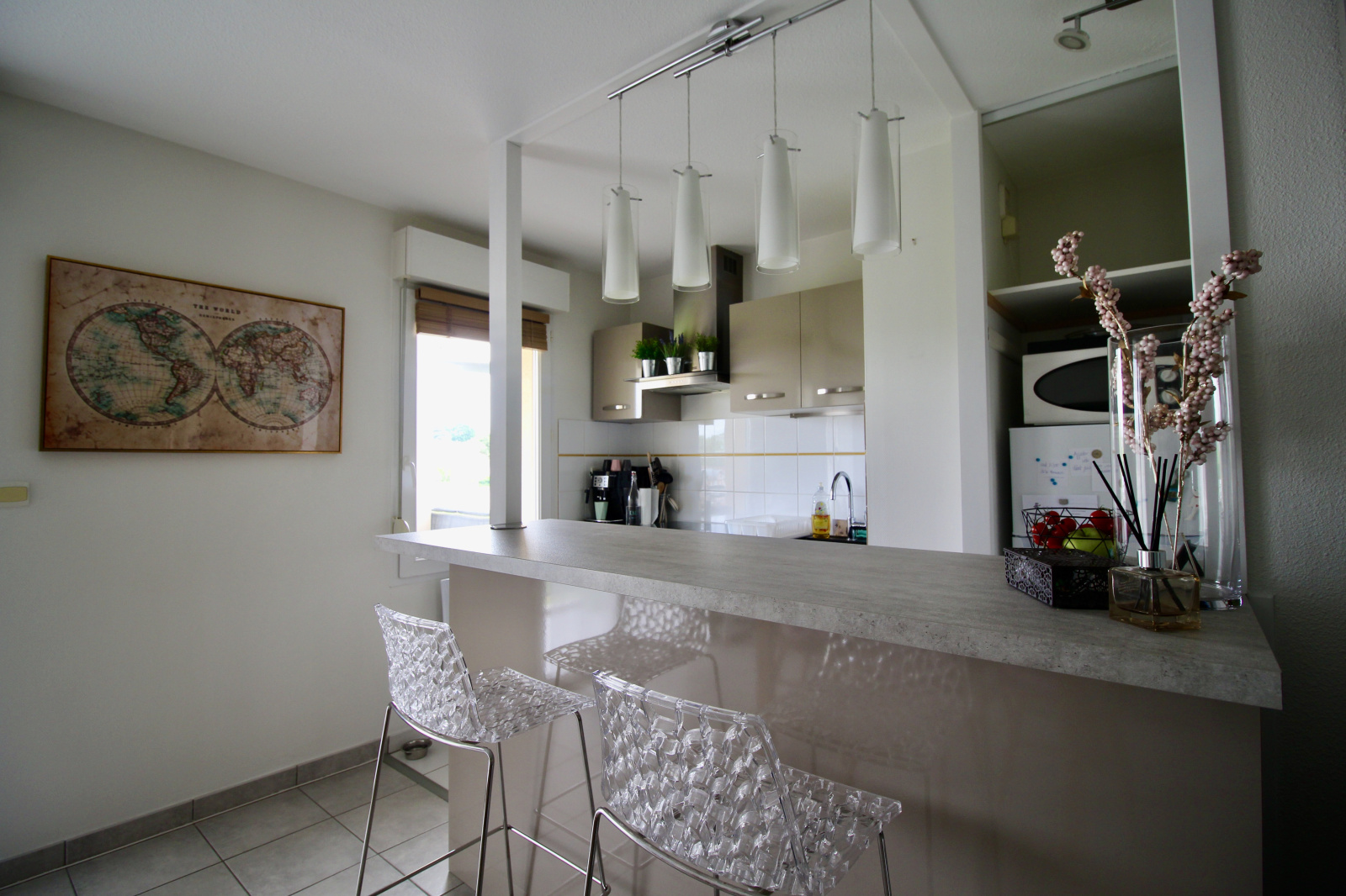Cet appartement est tout confort et très bien entretenu : une cuisine récente, double vitrage PVC et volets roulants, décoration avec goût.