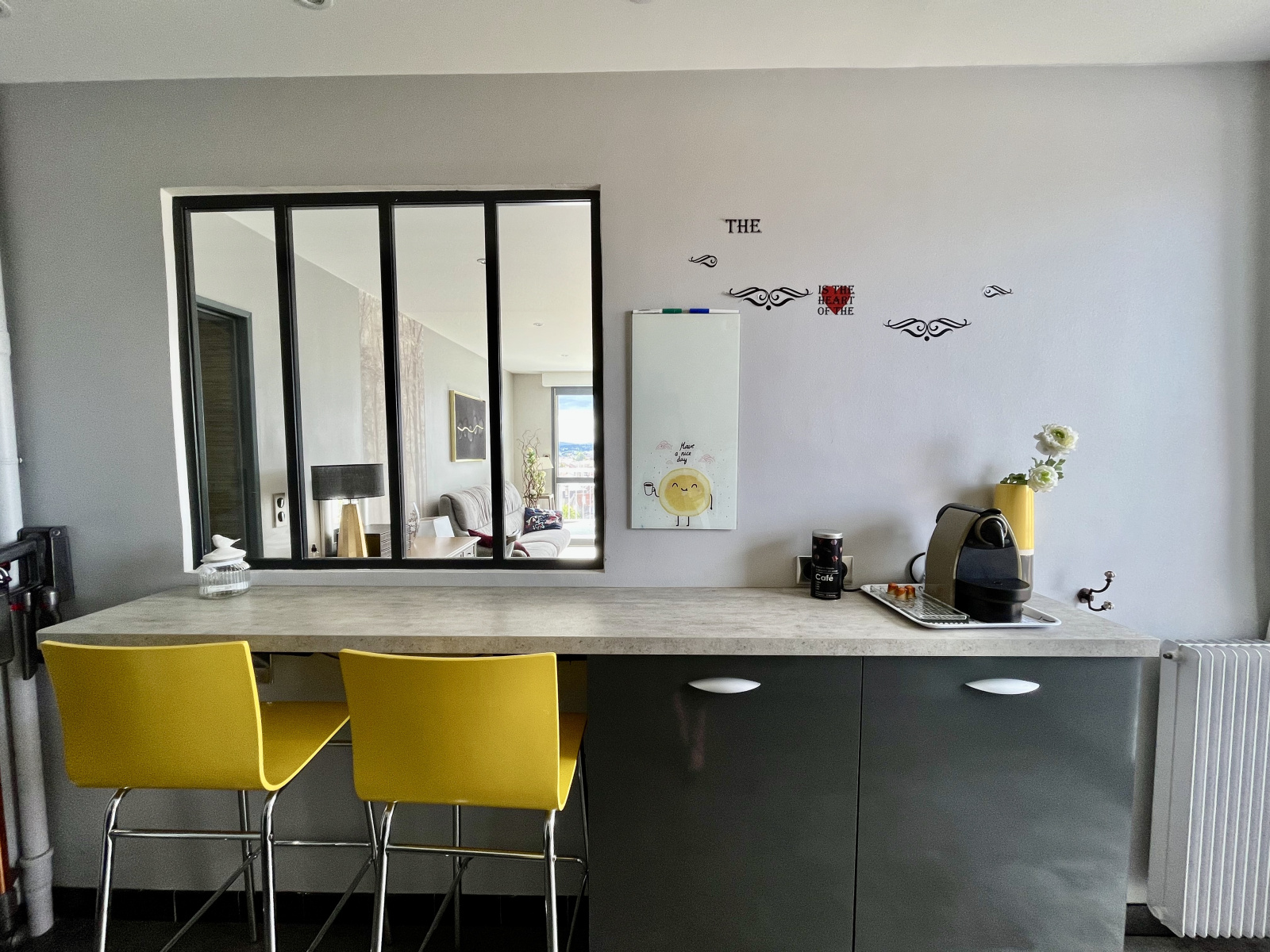 Cet appartement est très lumineux de part ses grandes ouvertures et est même équipé d'une climatisation.