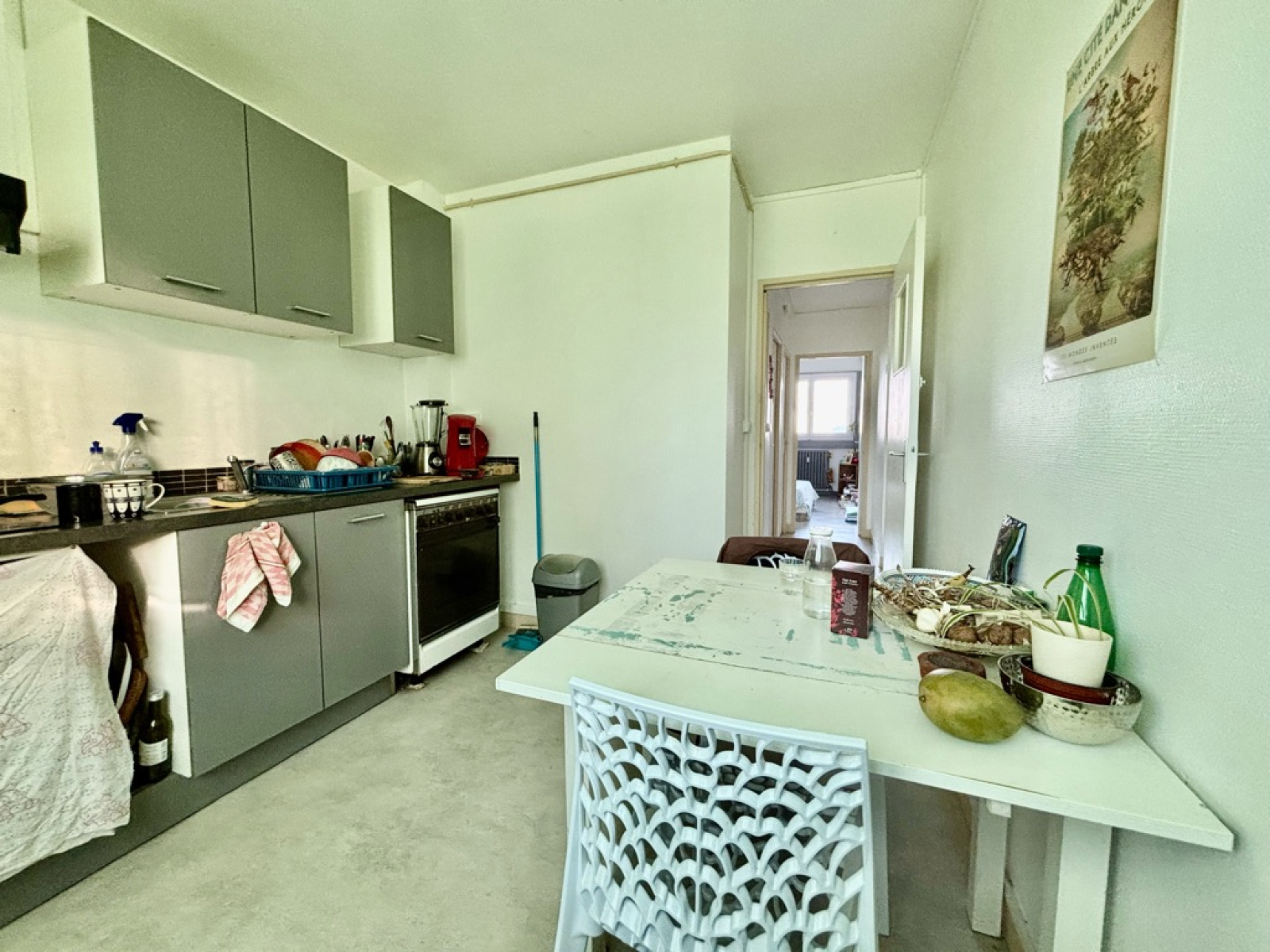 Voici un appartement en bon état de type 3 de 61m² avec un balcon et une loggia, vendu avec locataire en place. Cet appartement dispose d'une entrée avec rangements, une cuisine séparée, un séjour avec balcon, une chambre donnant sur loggia, une deuxième chambre, un WC séparé et une salle d'eau.