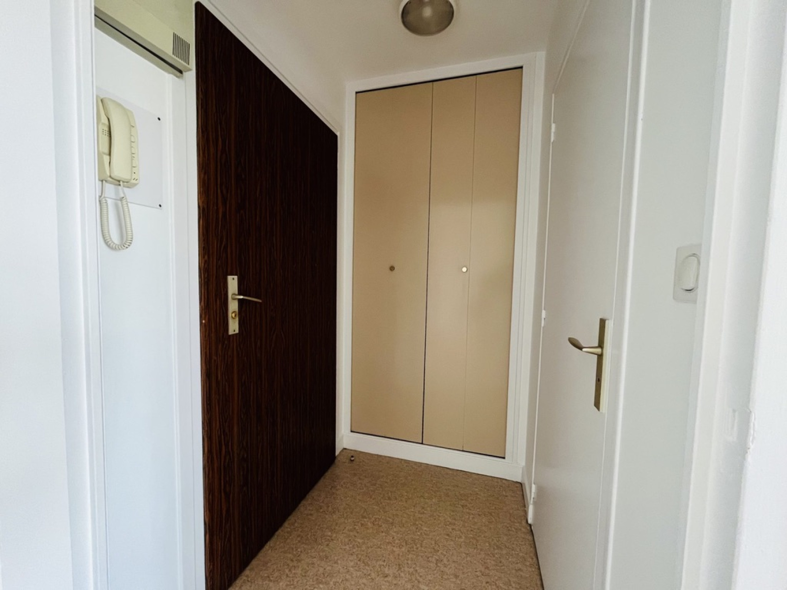 L'appartement est lumineux et offre une entrée avec rangement, une salle de bains avec WC, une grande pièce de vie pouvant recevoir un pare-vent et séparé la pièce en un coin nuit et un coin jour et une cuisine séparée aménagée et équipée. L'appartement a été récemment repeint et il est très bien entretenu. Une cave en plus pour le stockage.Il bénéficie d'un chauffage électrique individuel (panneaux rayonnants récent).