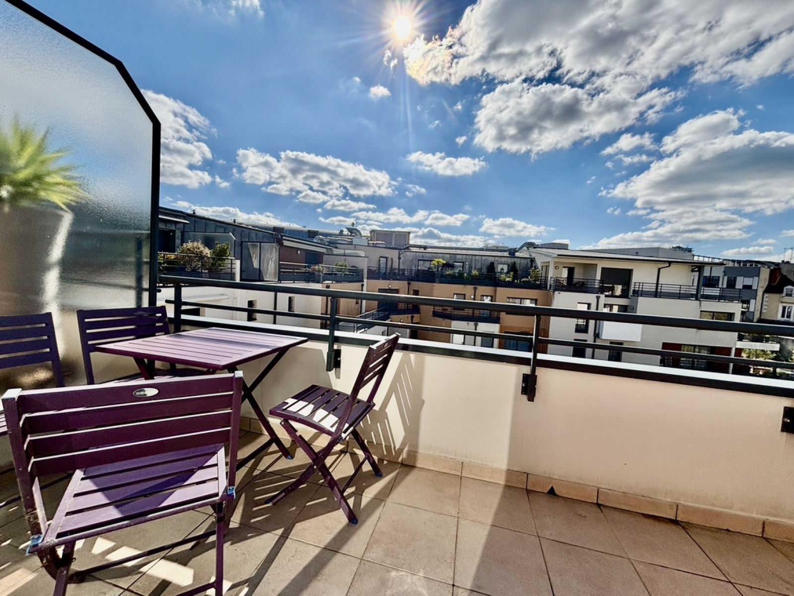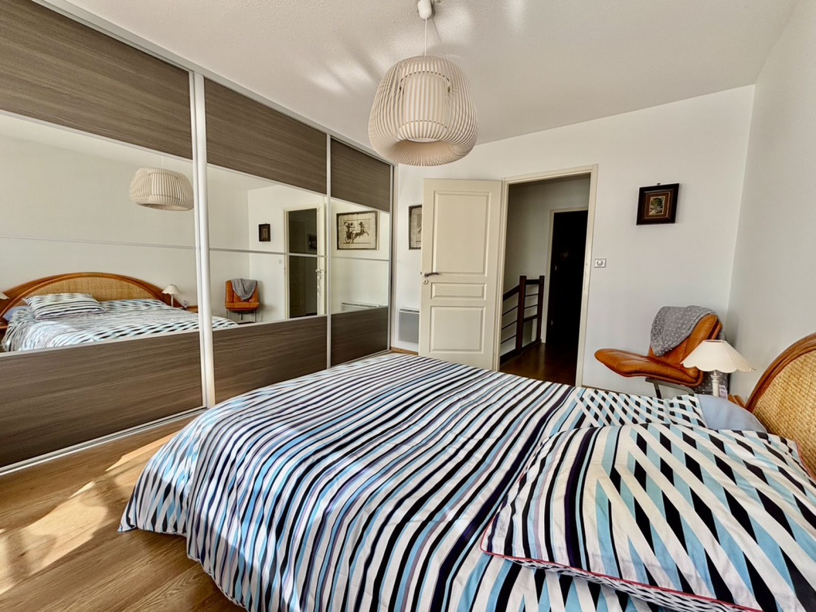 Cet appartement en duplex situé en dernier étage propose une belle entrée avec rangements, un espace salle à manger et une cuisine ouverte aménagée et équipée donnant sur balcon, un espace salon avec une terrasse avec vue imprenable et un WC séparé avec lave-main. A l'étage, vous retrouverez la partie nuit avec un palier desservant trois chambres avec rangements et une salle d'eau avec WC.