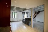 A l'étage, la partie nuit offre une mezzanine, une salle d'eau, un bureau (office de chambre d'enfant), une chambre avec rangement.