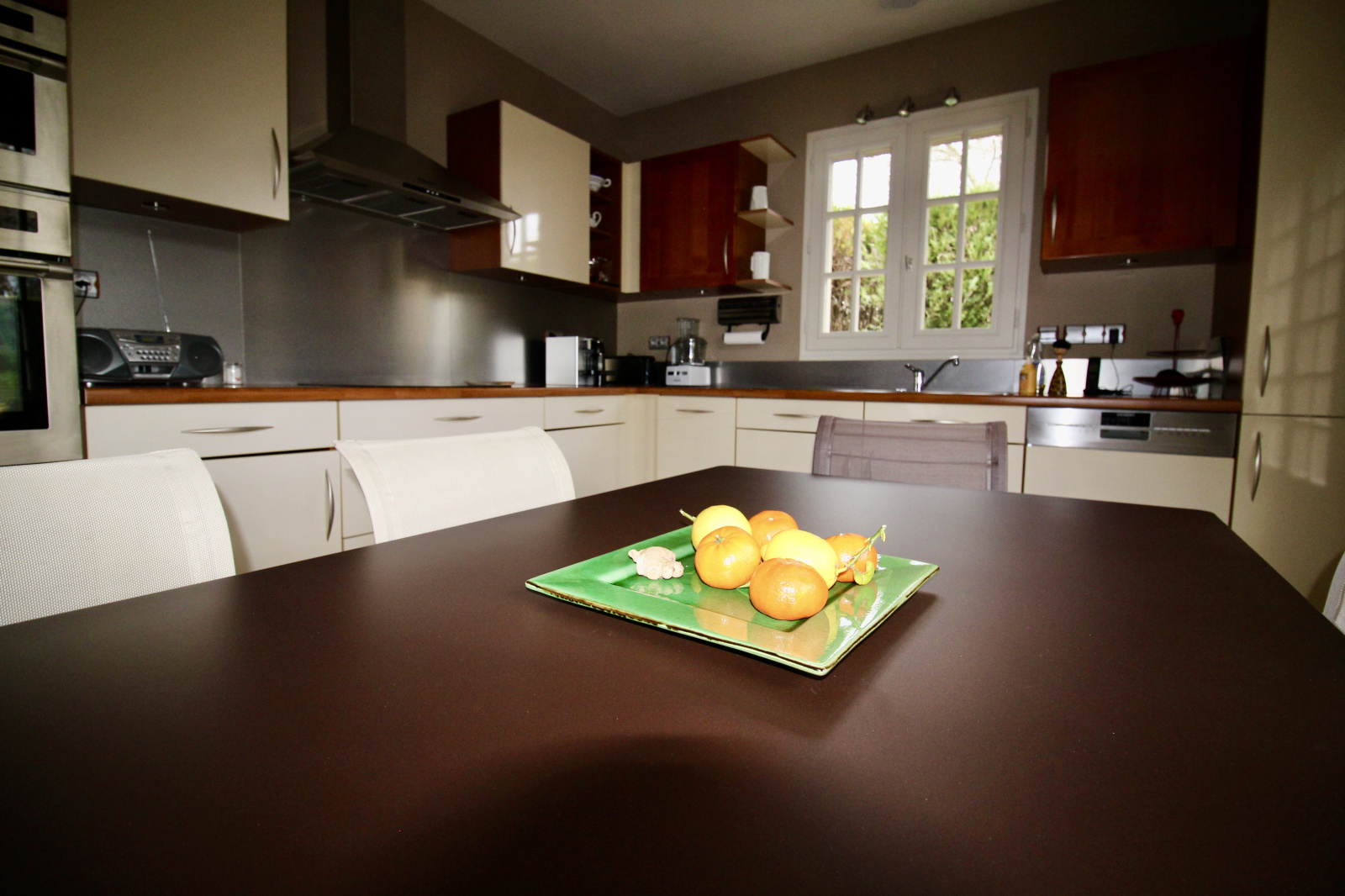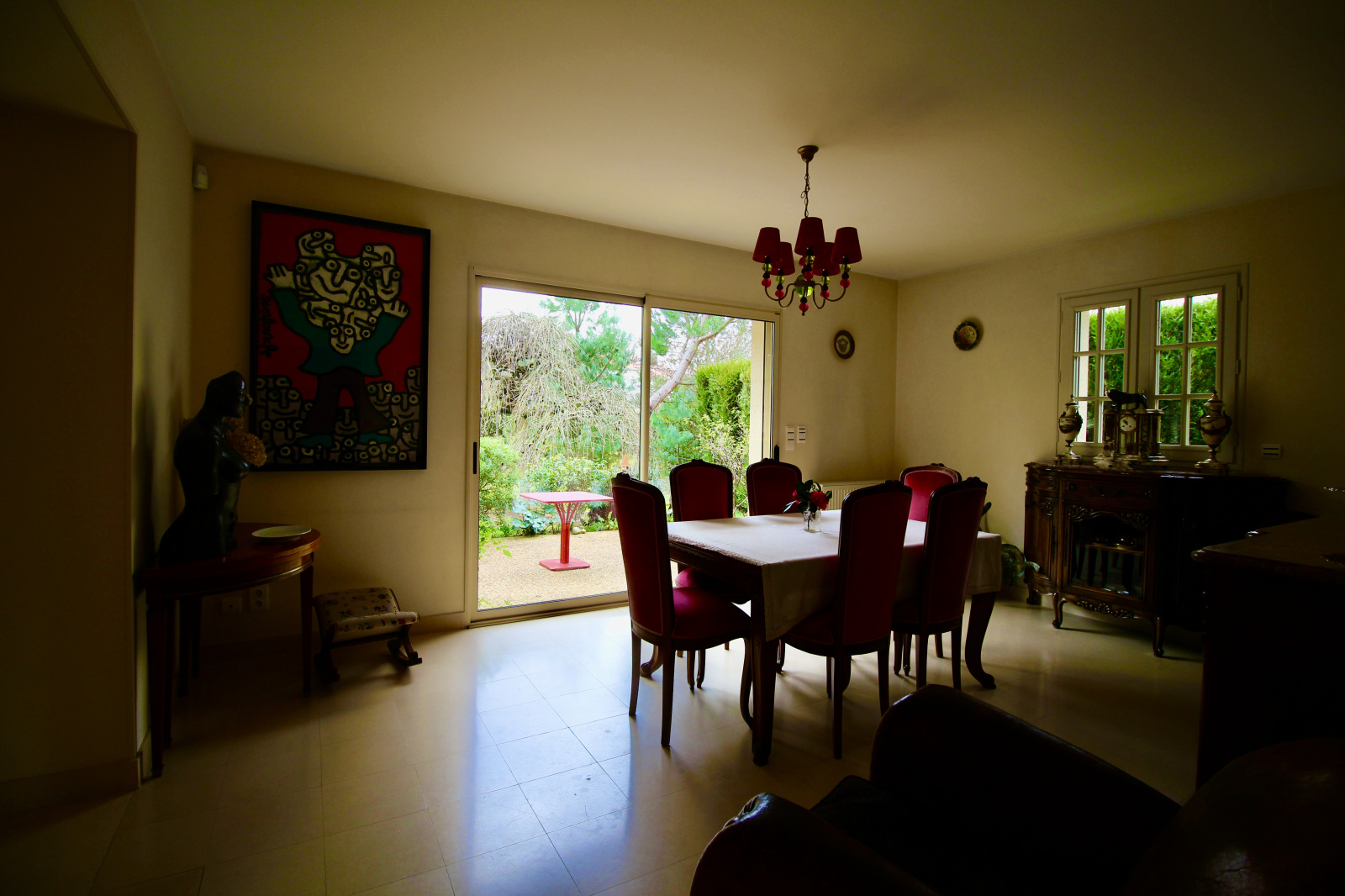 Côté extérieur, vous serez admiratifs par ce cadre verdoyant et ses variétés d'arbres et de fleurs harmonieusement plantés. Il vous permet d'être sans vis à vis et au calme.