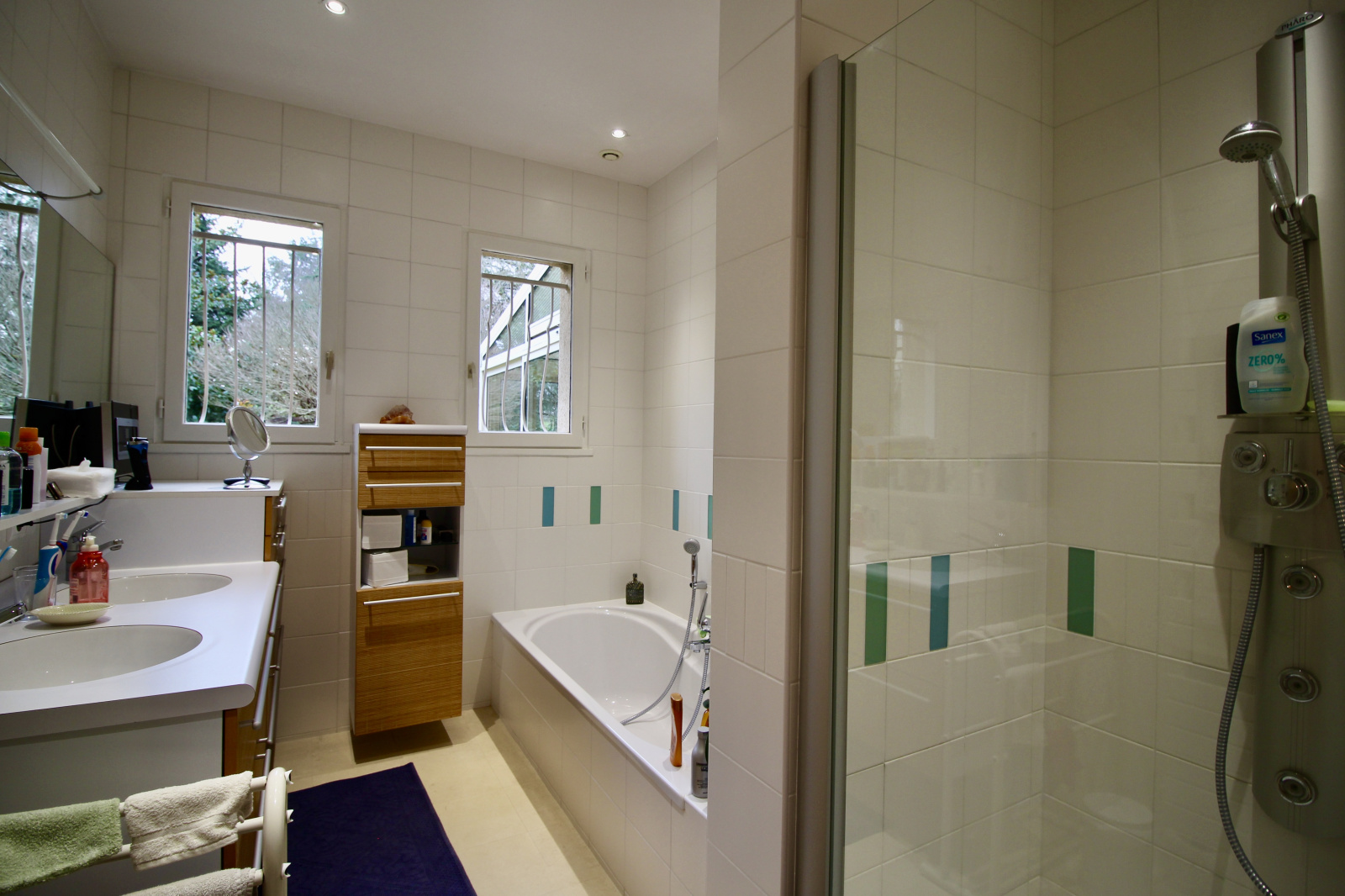 De l'autre face de la maison, vous profiterez d'un espace nuit composé de deux chambres avec rangements, une salle de bains avec douche et baignoire, un WC séparé avec lave main et un bureau.