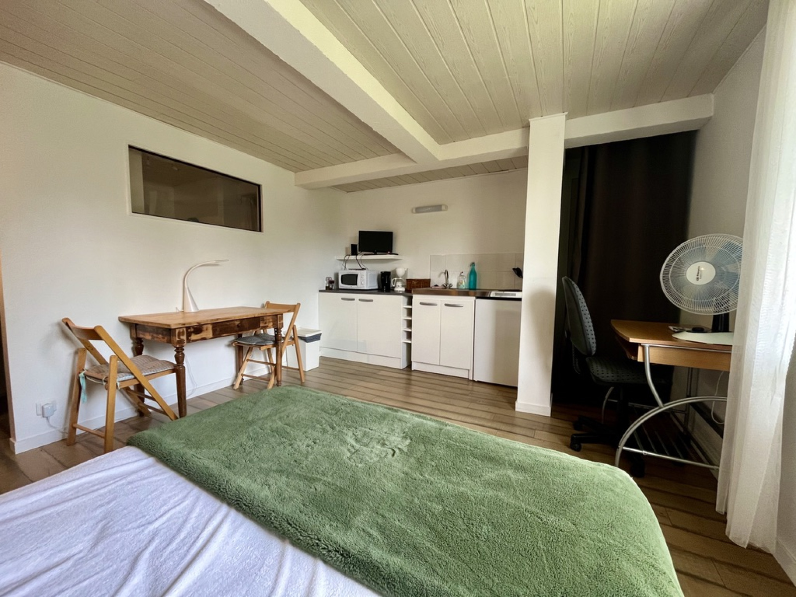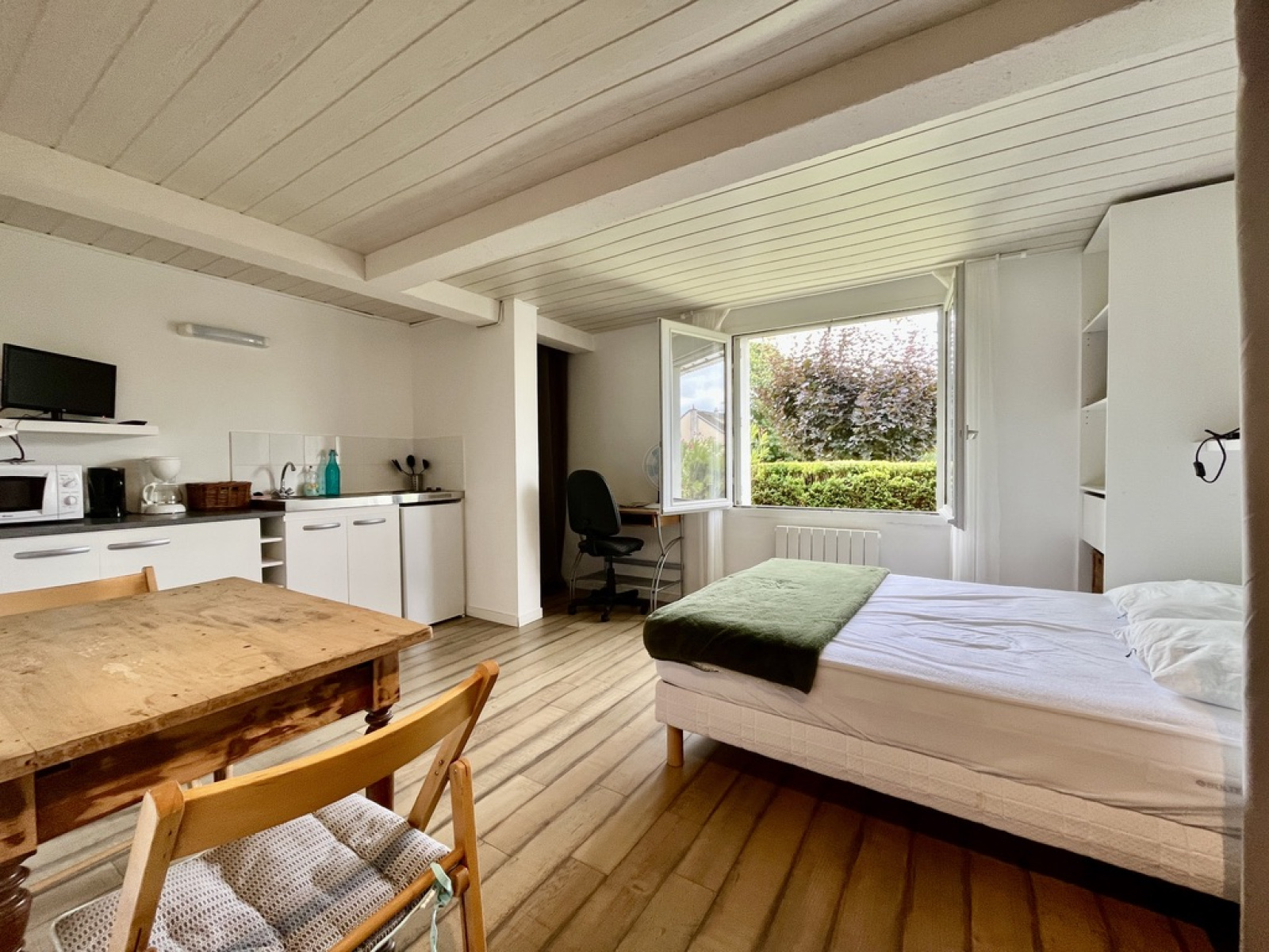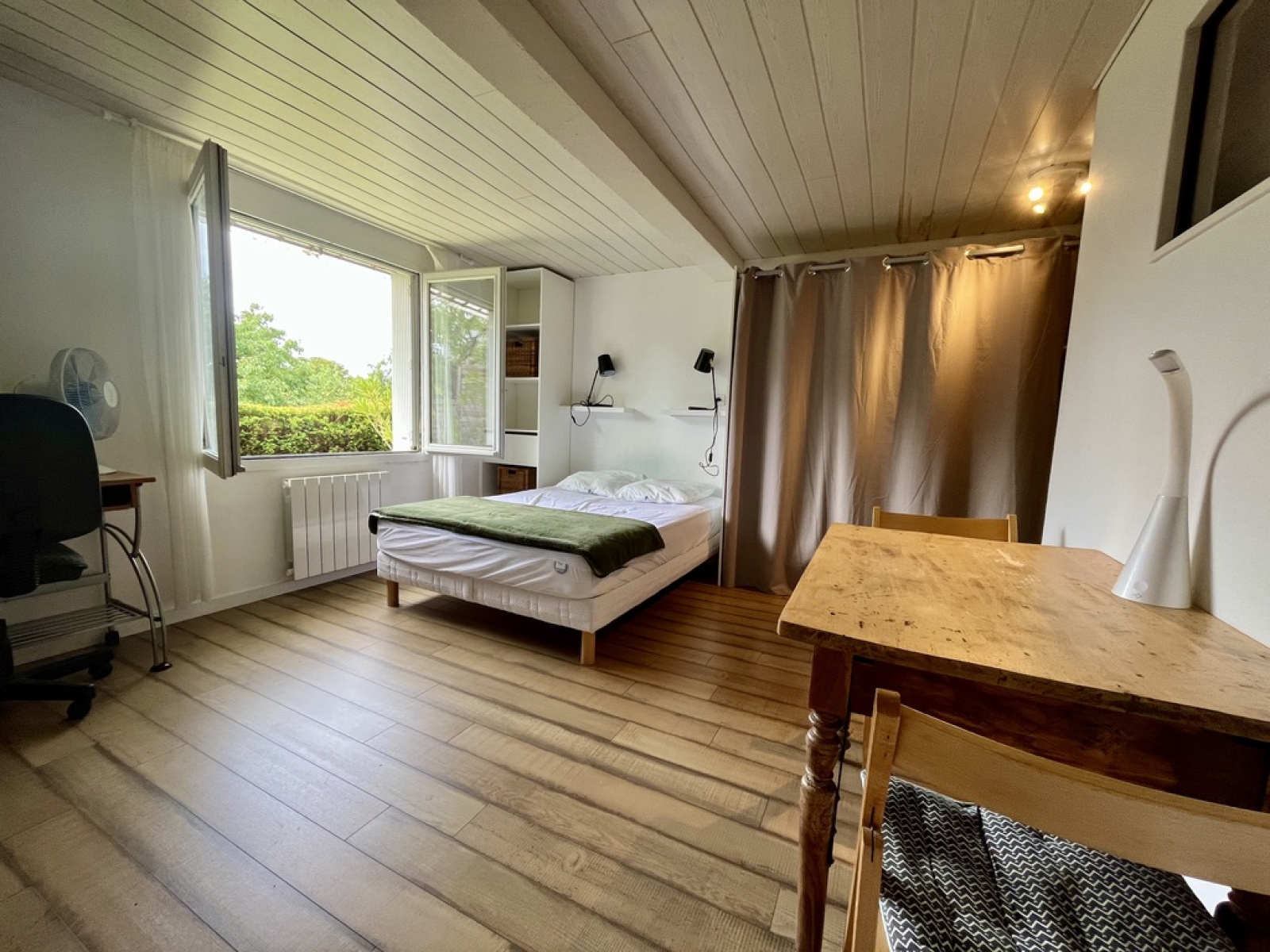 En sous-sol, vous bénéficiez d'un garage, d'une grande pièce buanderie et d'un studio indépendant avec sa kitchenette, sa salle d'eau et ses petits rangements.