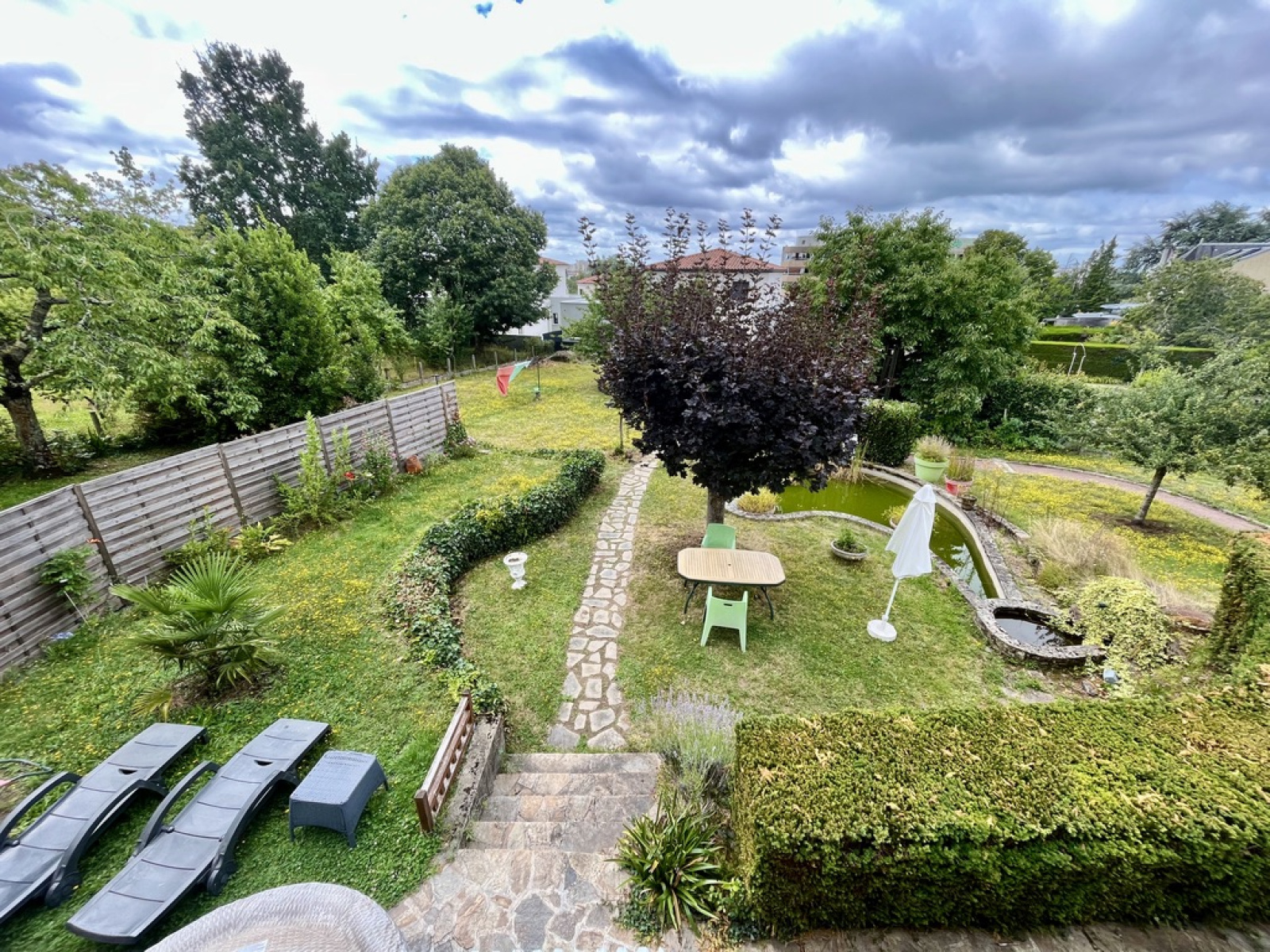 A l'arrière, vous profiterez d'un vaste jardin arboré, fleuri avec son bassin à poissons. Vous pourrez tout à fait imaginer une piscine si vous le souhaitez.