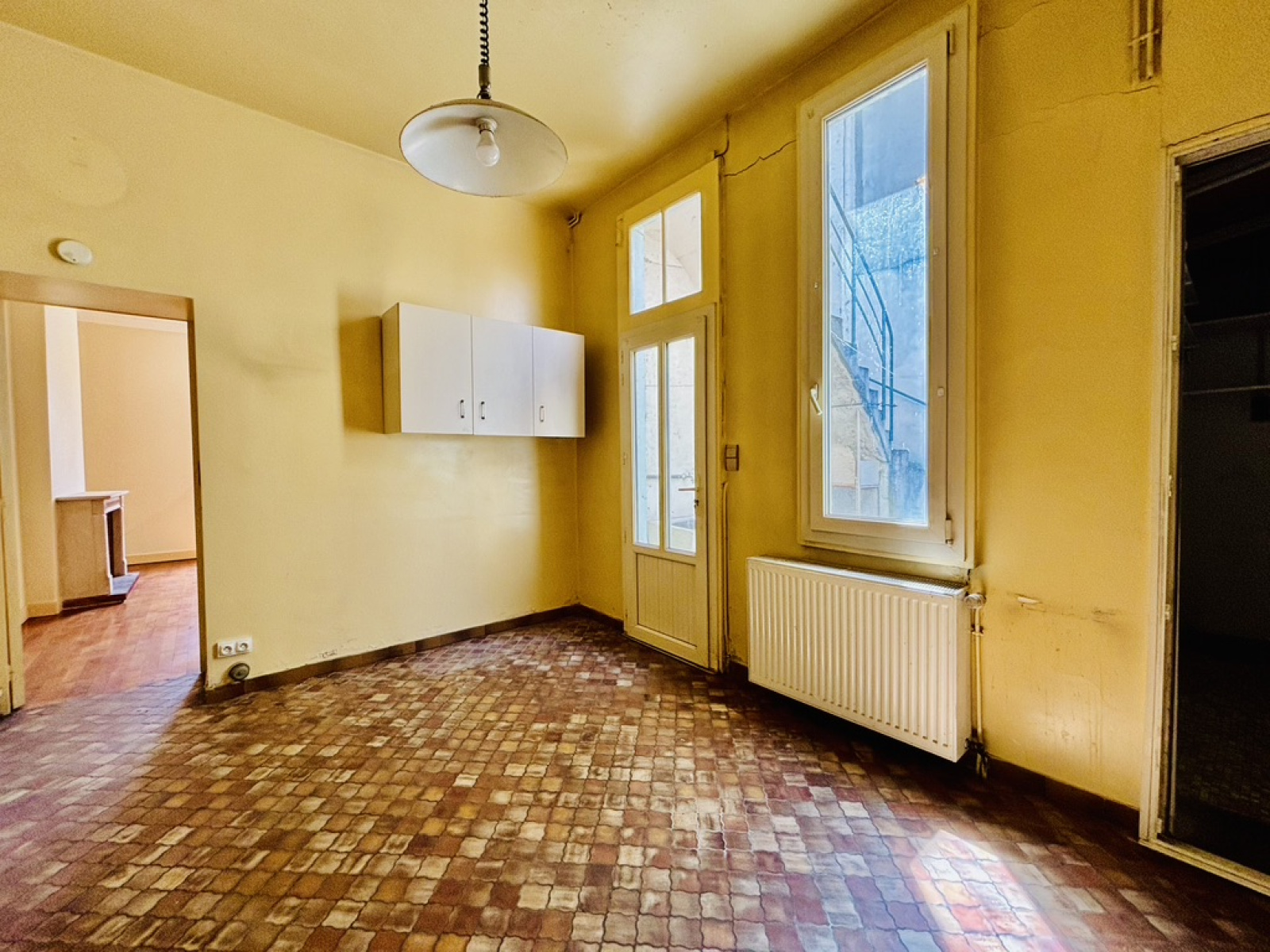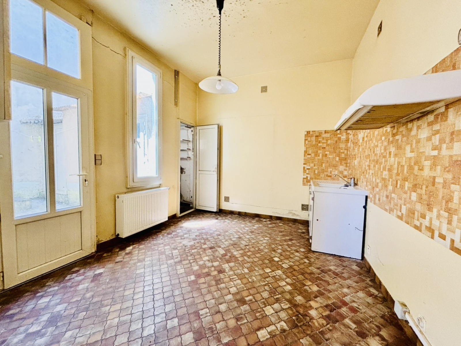 Une maison de ville avec garage à rénover et son petit jardin. Elle dispose d'une entrée, une salle de bains, un WC séparé, un séjour et une cuisine attenante avec un espace buanderie. A l'étage, vous bénéficiez de trois chambres et un WC séparé.
