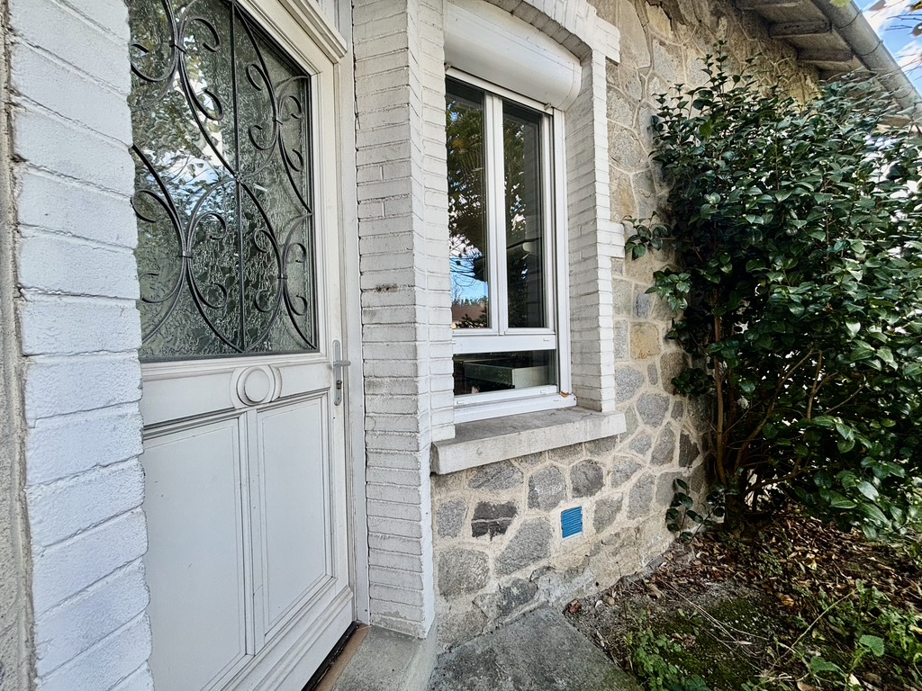 La maison offre en rez-de-chaussée : une cuisine aménagée et équipée ouverte sur salle à manger, un salon attenant à la cuisine, un bureau/chambre avec salle d'eau et WC.