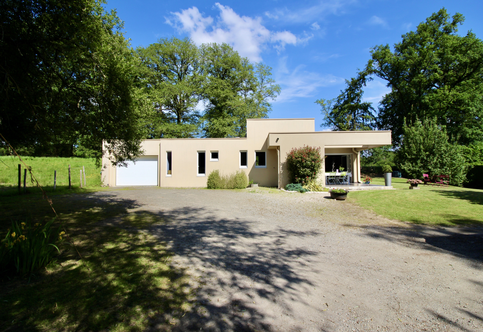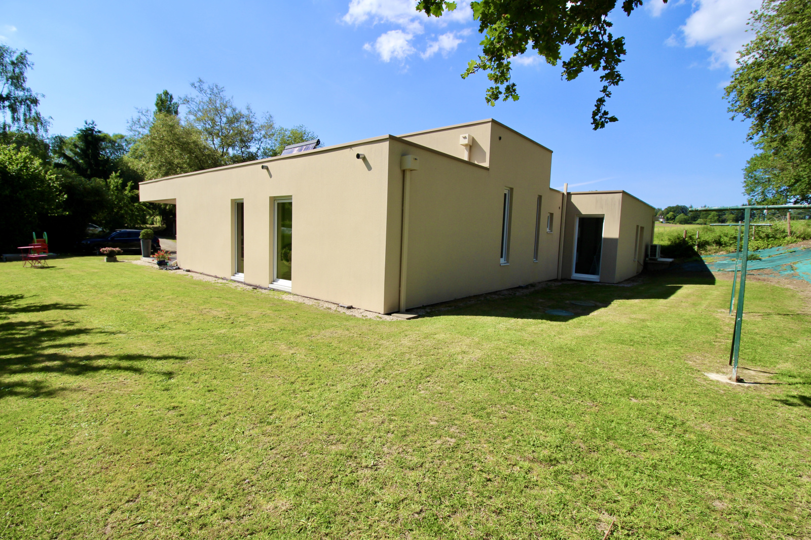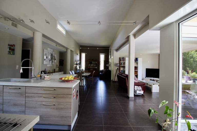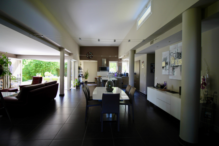 Voici une maison d'architecte de 2010 à vous couper le souffle avec sa toiture végétalisée, sa domotique et ses 150m² habitables. Cette maison est entièrement de plain pied et implantée sur une parcelle de terrain de 2400m². Elle offre une belle pièce de vie avec cuisine ouverte aménagée et équipée, une salle à manger, un espace bureau, l'ensemble tout ouvert. La partie nuit se compose de trois chambres dont une suite parentale avec salle d'eau, une autre salle de bains, un dressing.