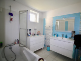 Construite en briques mono-bloc, elle dispose d'un chauffage au sol, d'un chauffe-eau solaire, d'une isolation supérieure, de centralisation de volets, de double vitrage PVC et ALU et d'une faible consommation électrique.