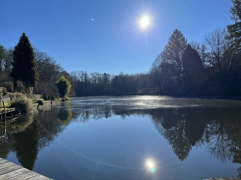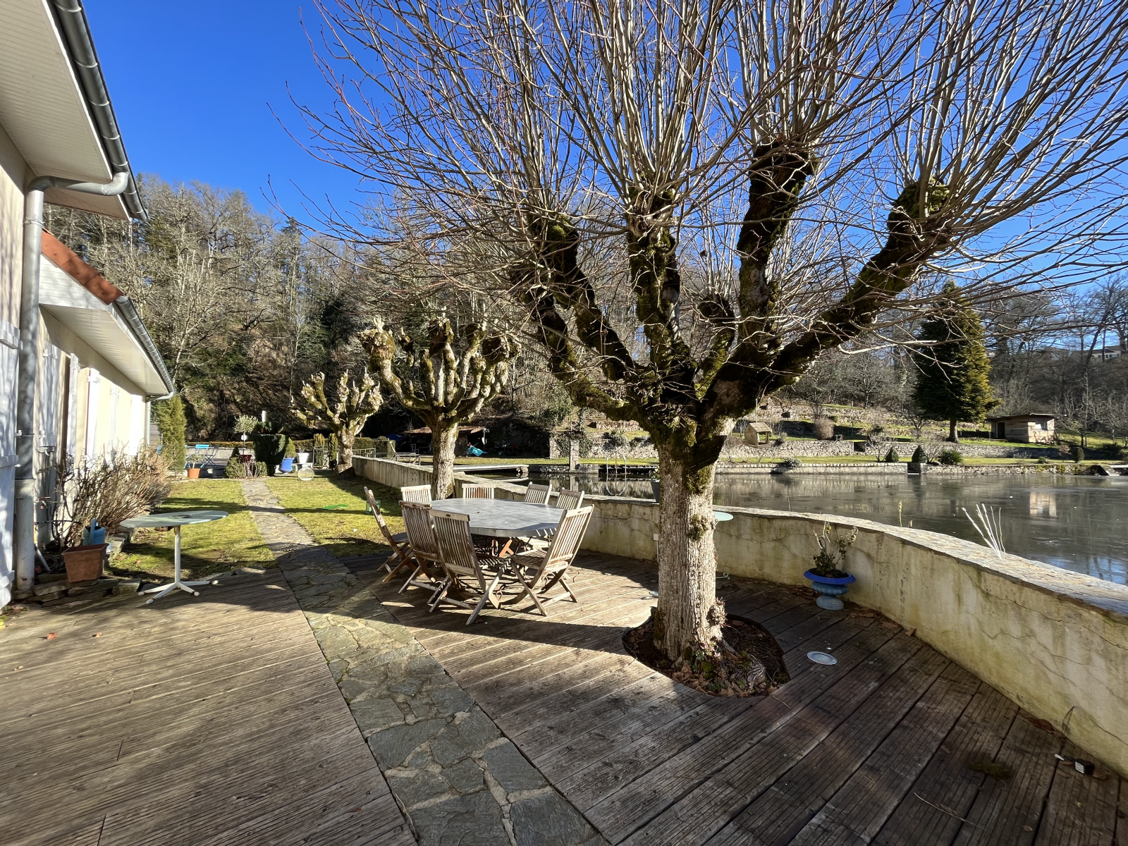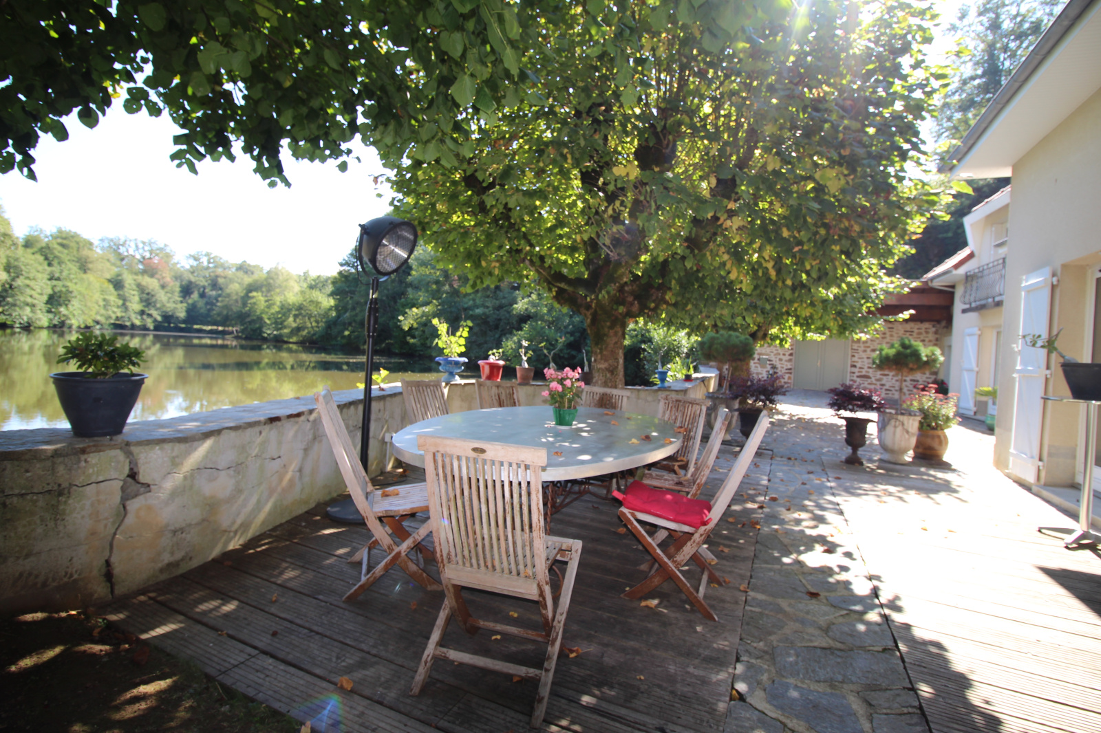 En extérieur, vous aurez un espace terrasse avec une vue linéaire sur un étang, un second espace bien être près de la piscine, un verger, un potager sur l'autre rive.