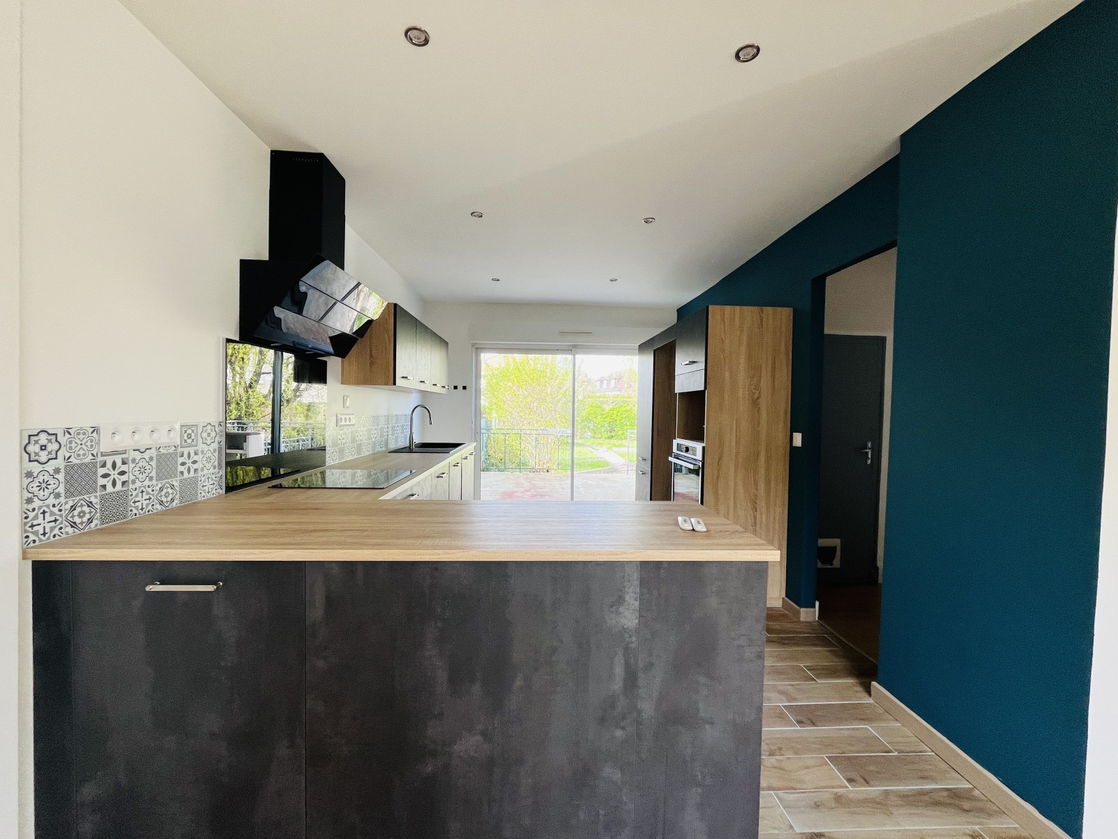 Cette maison propose en rez-de-chaussée : une entrée, un séjour salon avec sa cuisine ouverte aménagée et équipée donnant sur terrasse et jardin de chaque côté. Vous aurez donc une pièce de vie de plus de 53m² et le bénéfice d'une grande baie vitrée côté cuisine. En plus, un petit bureau attenant est idéal pour un espace de télétravail.