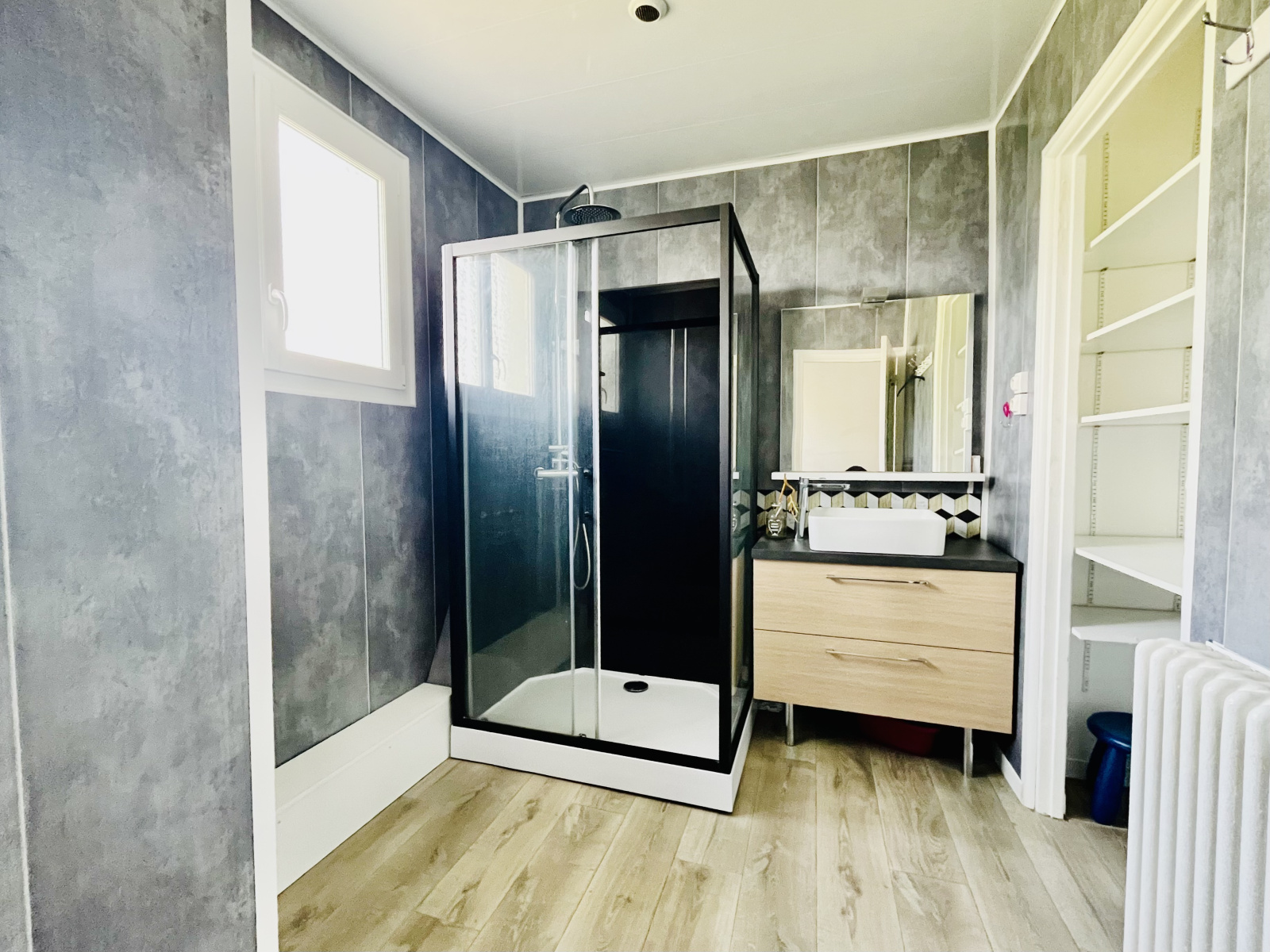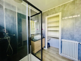 A l'étage, la maison dispose de trois chambres et un autre petite chambre d'enfants, d'une salle d'eau refaite récemment. A chaque étage, vous aurez des WC.
