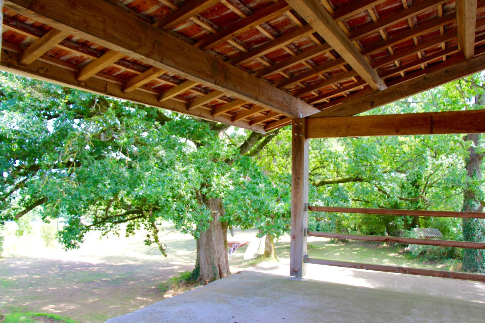 En extérieur vous profiterez d"un parc arboré avec son chêne tri-centenaire au moins... d'un abris de jardin, le bénéfice d'une source.