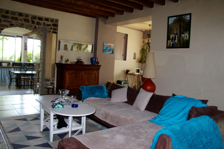 La maison est en bon état en terme de décoration, elle possède du double vitrage PVC et bois, et une chaudière gaz de ville de 3/4 ans.