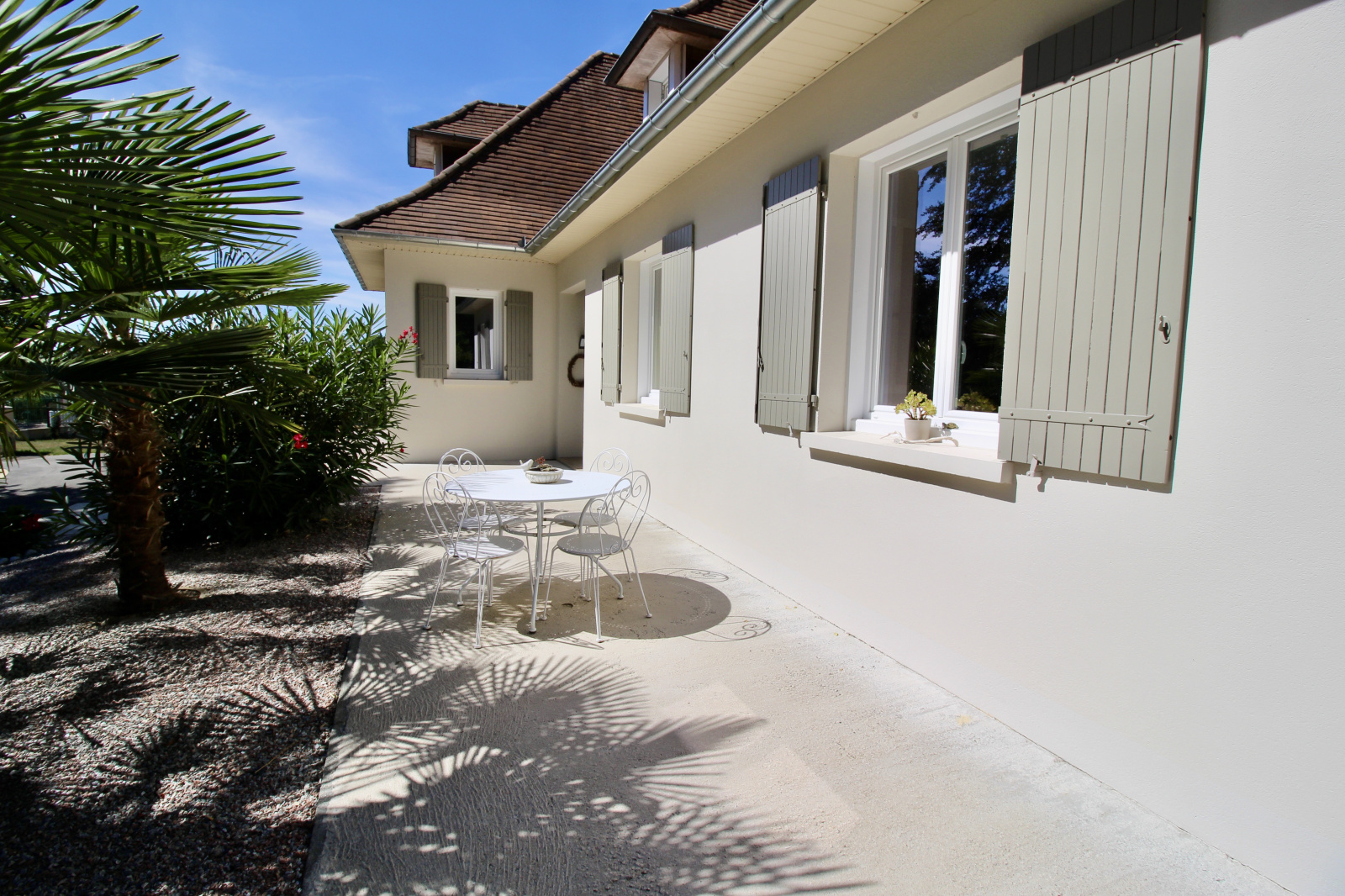 Implantée sur une parcelle de 2460m², elle vous fait profiter d'une aire de parking et d'un garage privatif pour deux véhicules et de mezzaninine pour le stockage. Les extérieurs sont trés soignés par ses terrasses, ses plantations, sa façade repeinte et en pierres.
