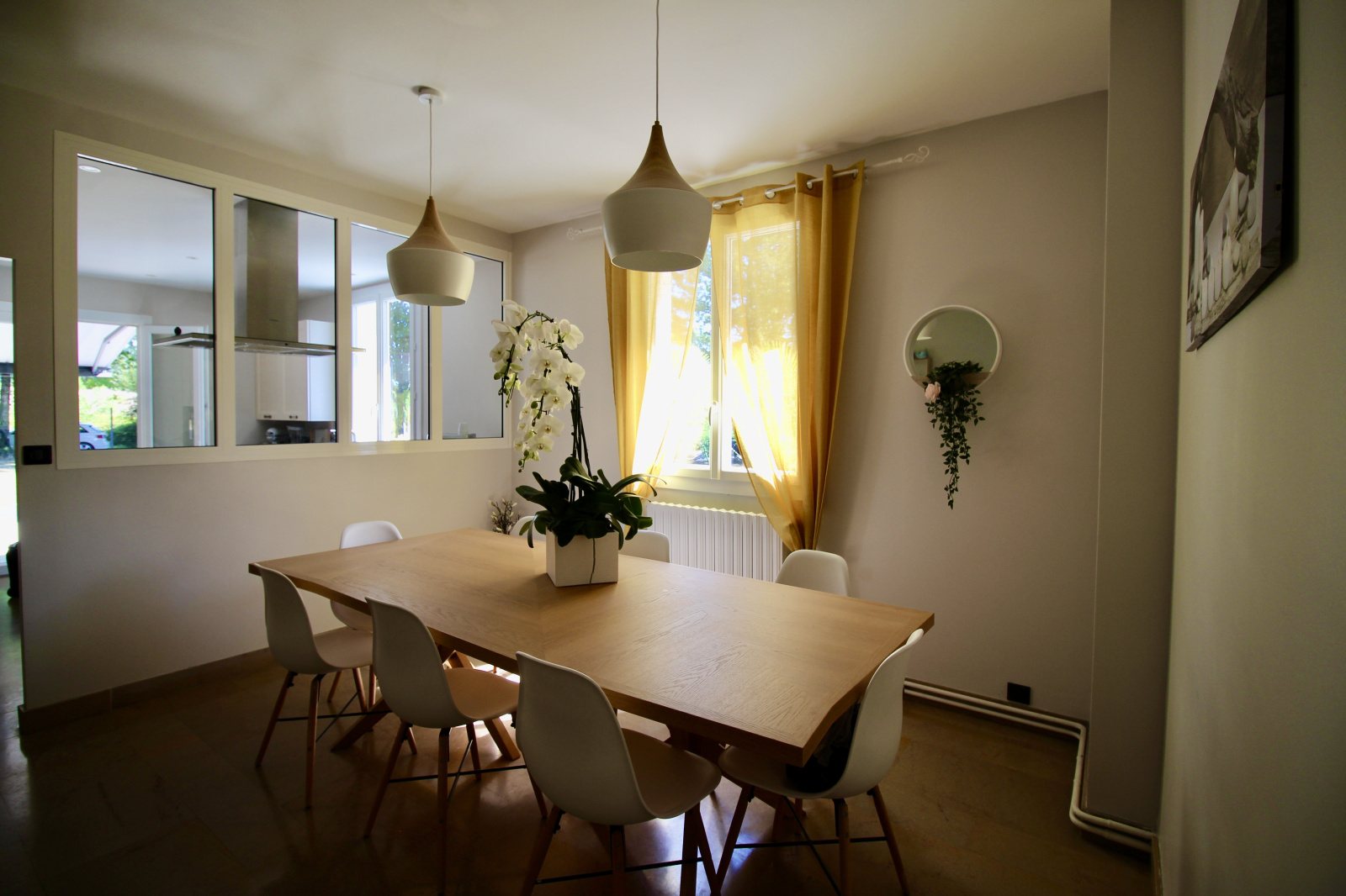 Cette Villa d'une surface de 185m² constituée d'un espace cuisine aménagée et équipée, d'une salle à manger spacieuse proche de la cuisine, d'un grand salon de 27m² avec sa cheminée insert. Toujours de plain pied, une partie nuit se compose de deux chambres dont une suite parentale avec salle d'eau et dressing aménagé. En plus, un espace buanderie et une magnifique cave à vin vous attendent.
