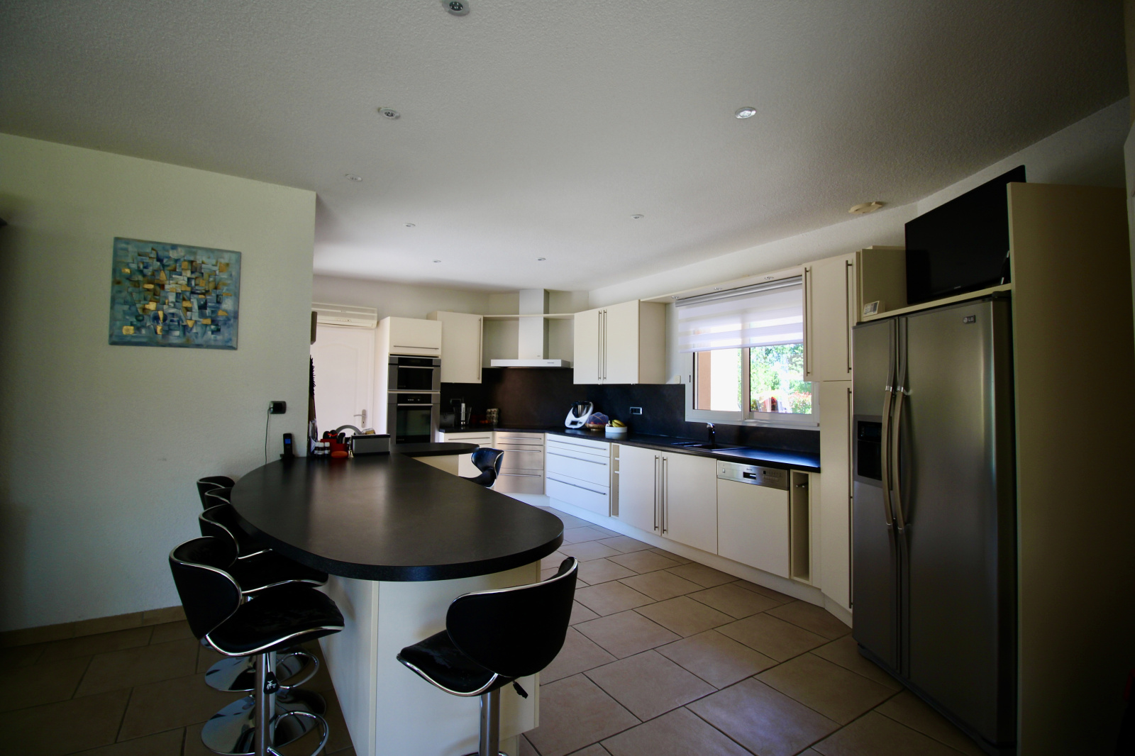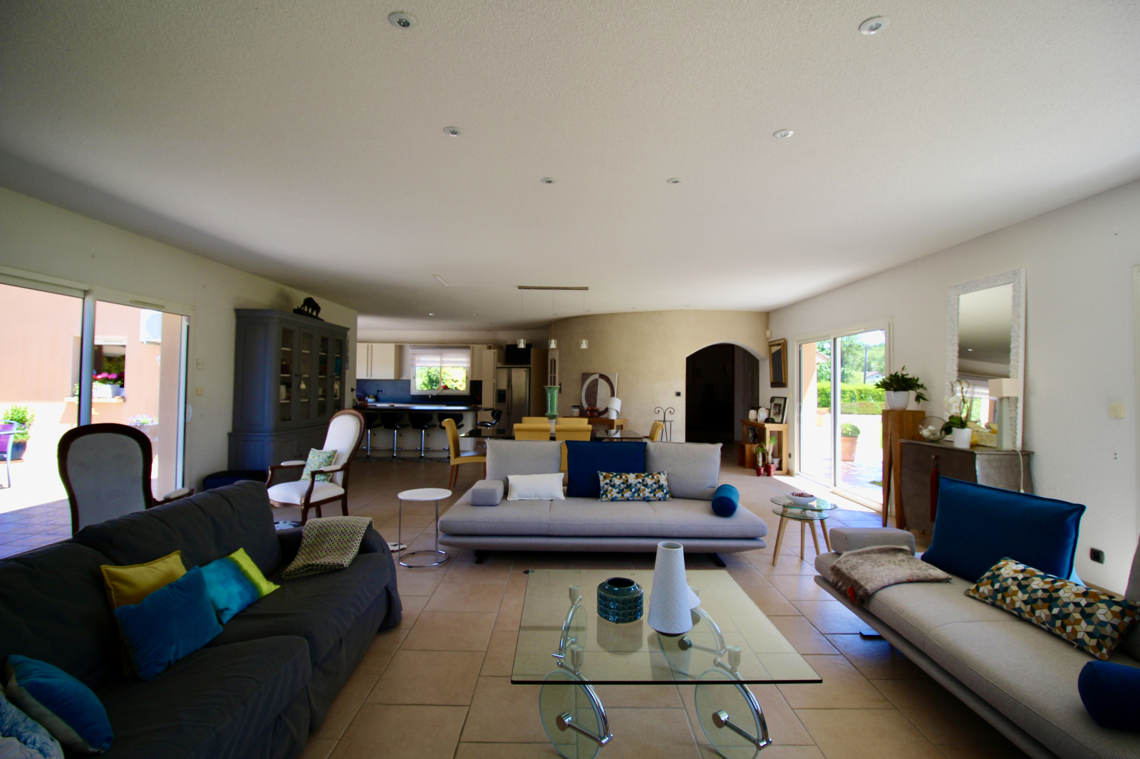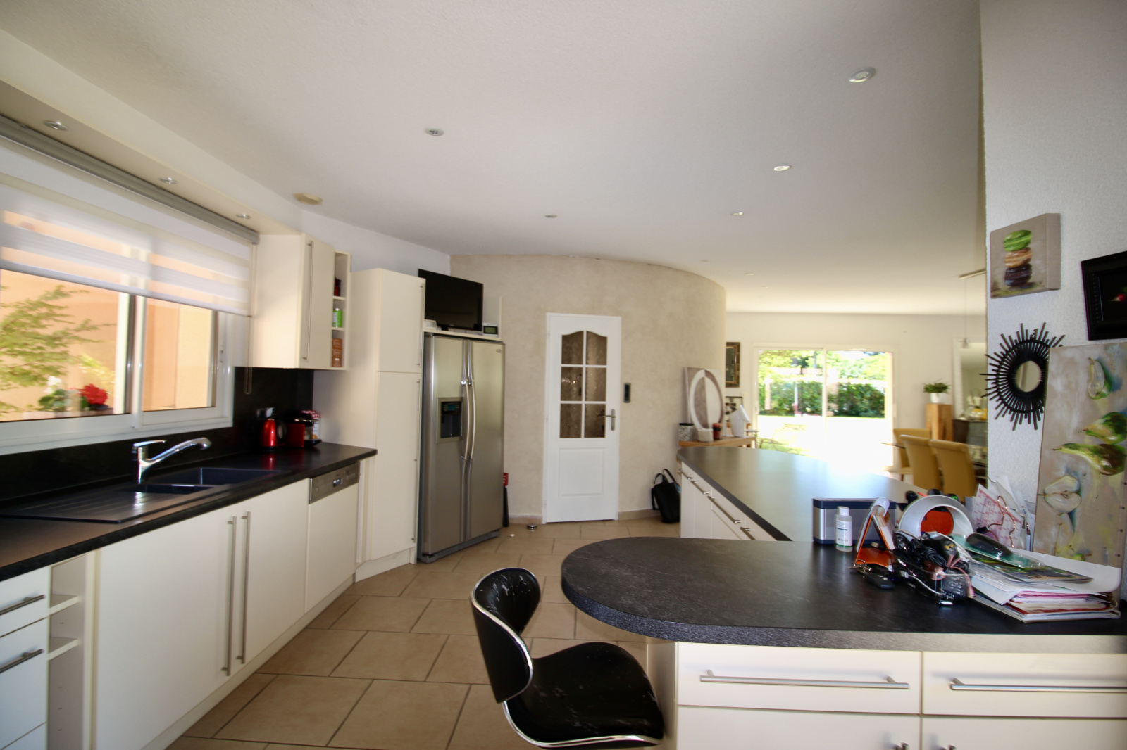 Vous trouverez un vrai hall d'entrée avec rangement, une pièce de vie de 73m² d'un seul tenant entouré de baies vitrées et proche de la cuisine ouverte toute équipée. Ses espaces de vie donnent directement sur plus de 130m² en extérieur ce qui est fort agréable pour déjeuner ou se reposer en toute tranquilité.