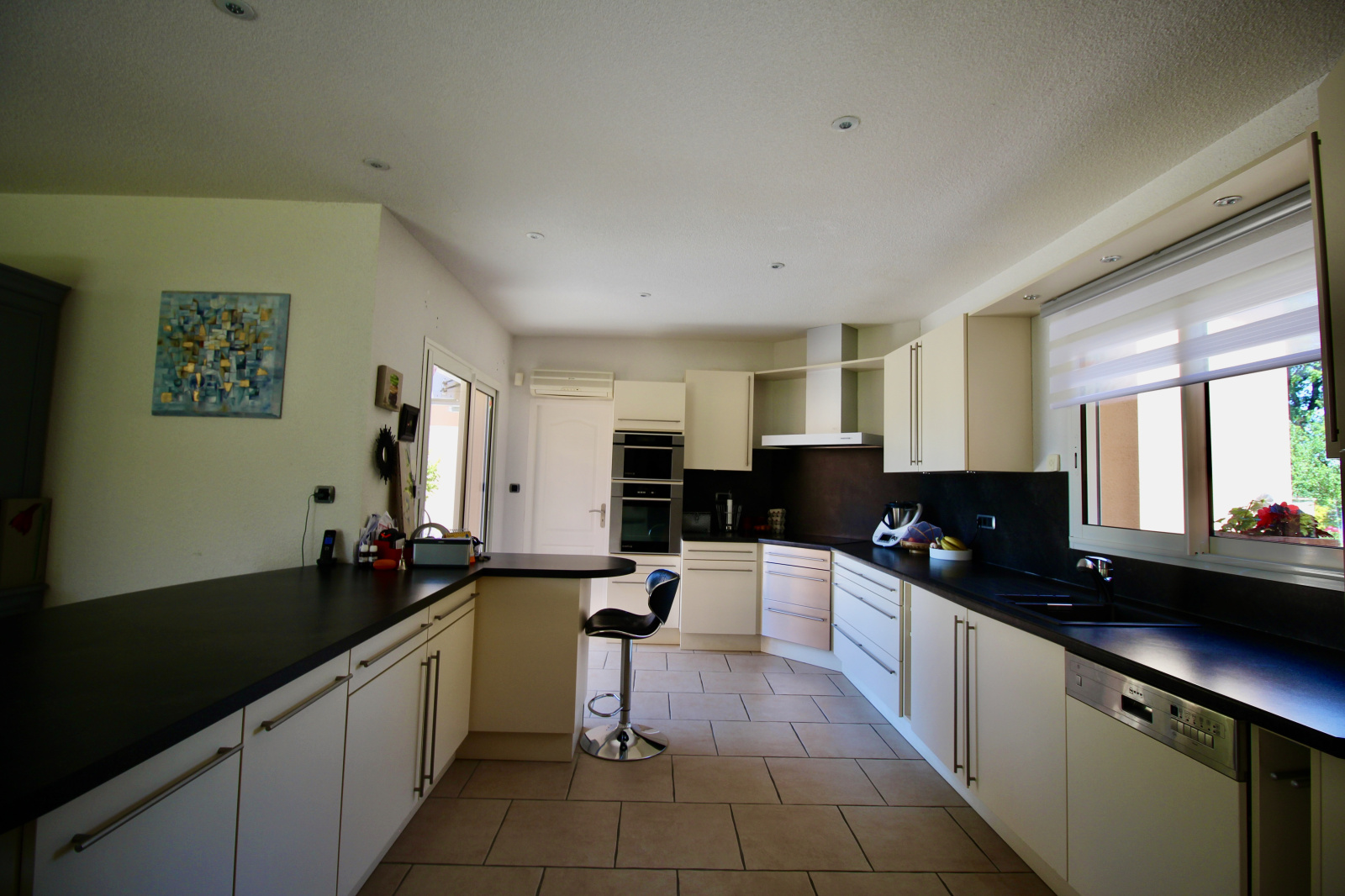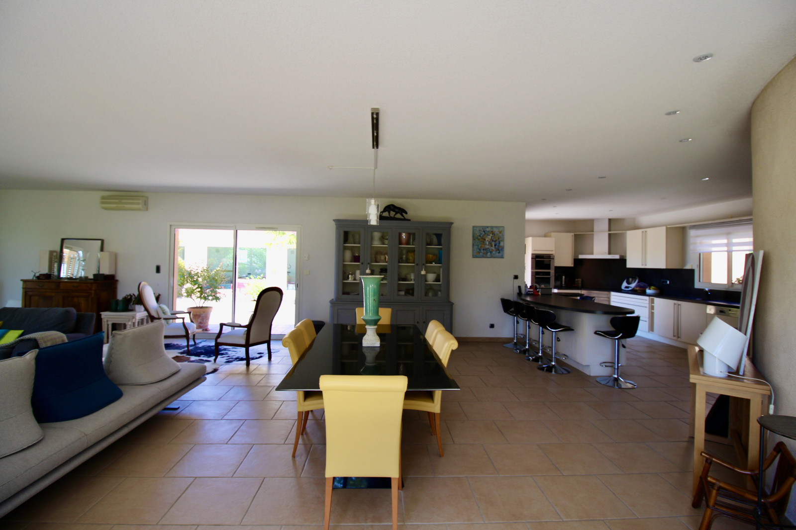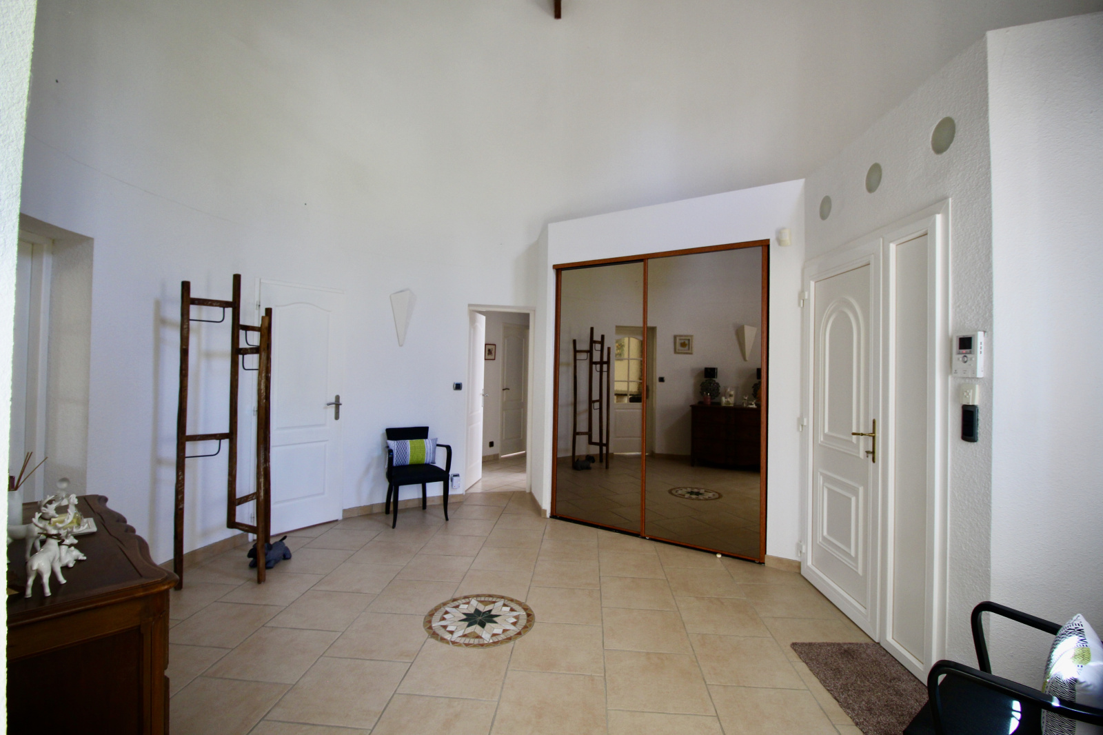 Vous trouverez un vrai hall d'entrée avec rangement, une pièce de vie de 73m² d'un seul tenant entouré de baies vitrées et proche de la cuisine ouverte toute équipée. Ses espaces de vie donnent directement sur plus de 130m² en extérieur ce qui est fort agréable pour déjeuner ou se reposer en toute tranquilité.