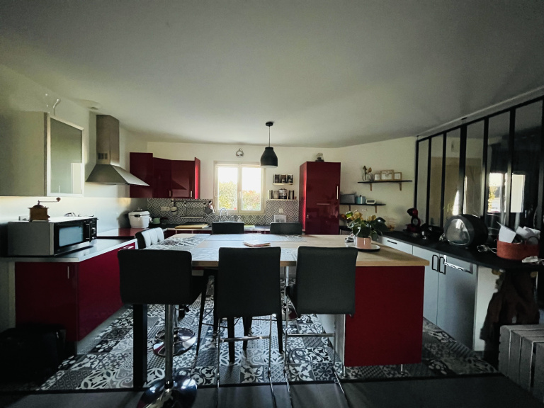 Voici une maison de plain-pied de 2012 en parfait état qui ne pourra que vous séduire en ce début d'année avec ses 117m² habitables. Elle se compose d'une entrée avec rangement, une belle pièce de vie avec cuisine ouverte aménagée et équipée avec son ilot donnant sur une terrasse sur l'arrière.