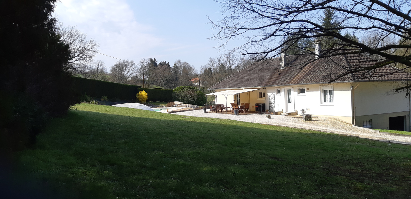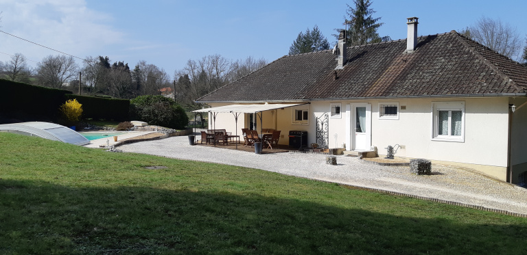 En sous sol vous aurez de quoi stationner deux véhicules, une cave, une buanderie. Et en extérieur, vous profiterez de la terrasse avec sa pergola, de la piscine avec son dôme et ses 6000m² de terrain.