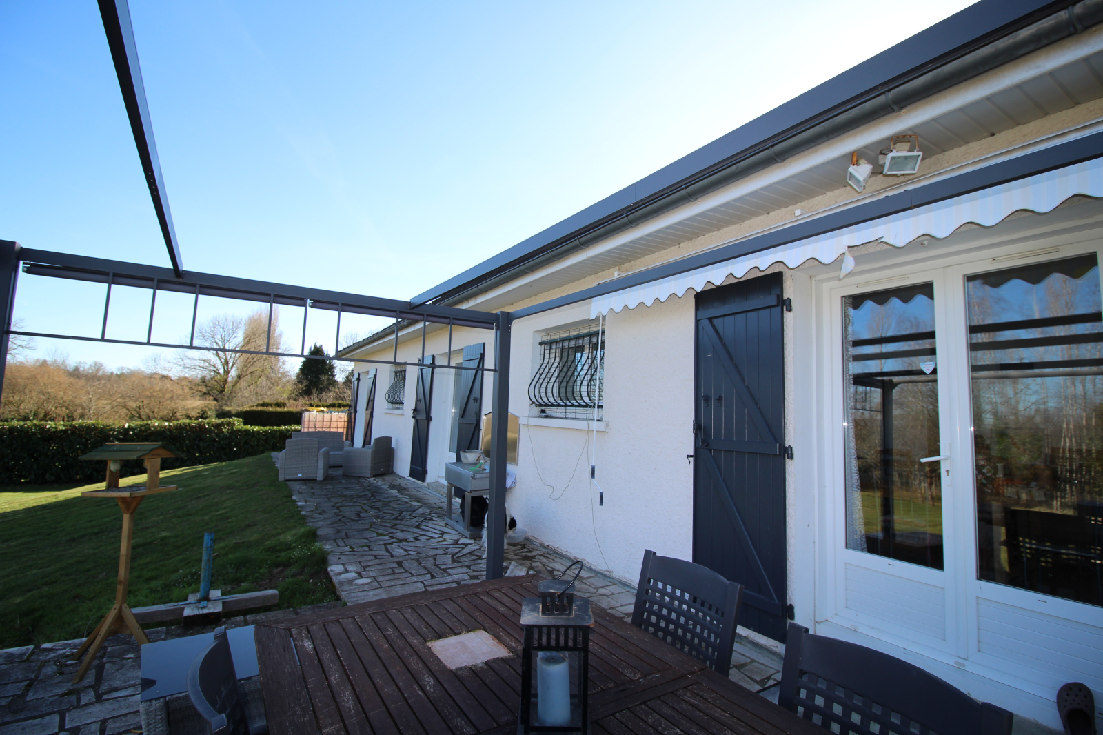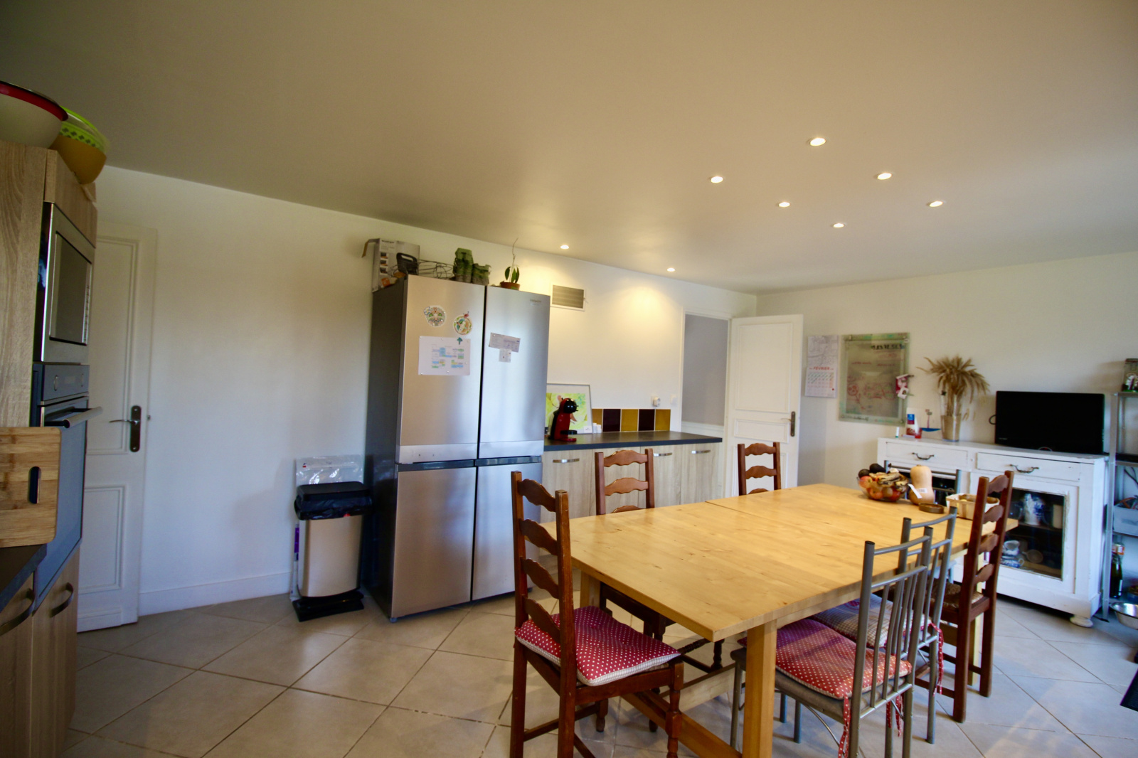 Cette maison sur sous sol complet de 1976 a été récemment relookée intérieurement du sol au plafond. Elle se compose d'une belle entrée avec rangements, d'un séjour avec cheminée et poele à granulés, une grande cuisine aménagée et équipée et donnant sur la terrasse et une partie nuit sur le même niveau. Celle-ci offre quatre chambres dont 3 avec rangements et toutes avec portes-fenetres, une salle d'eau et une salle de bains.