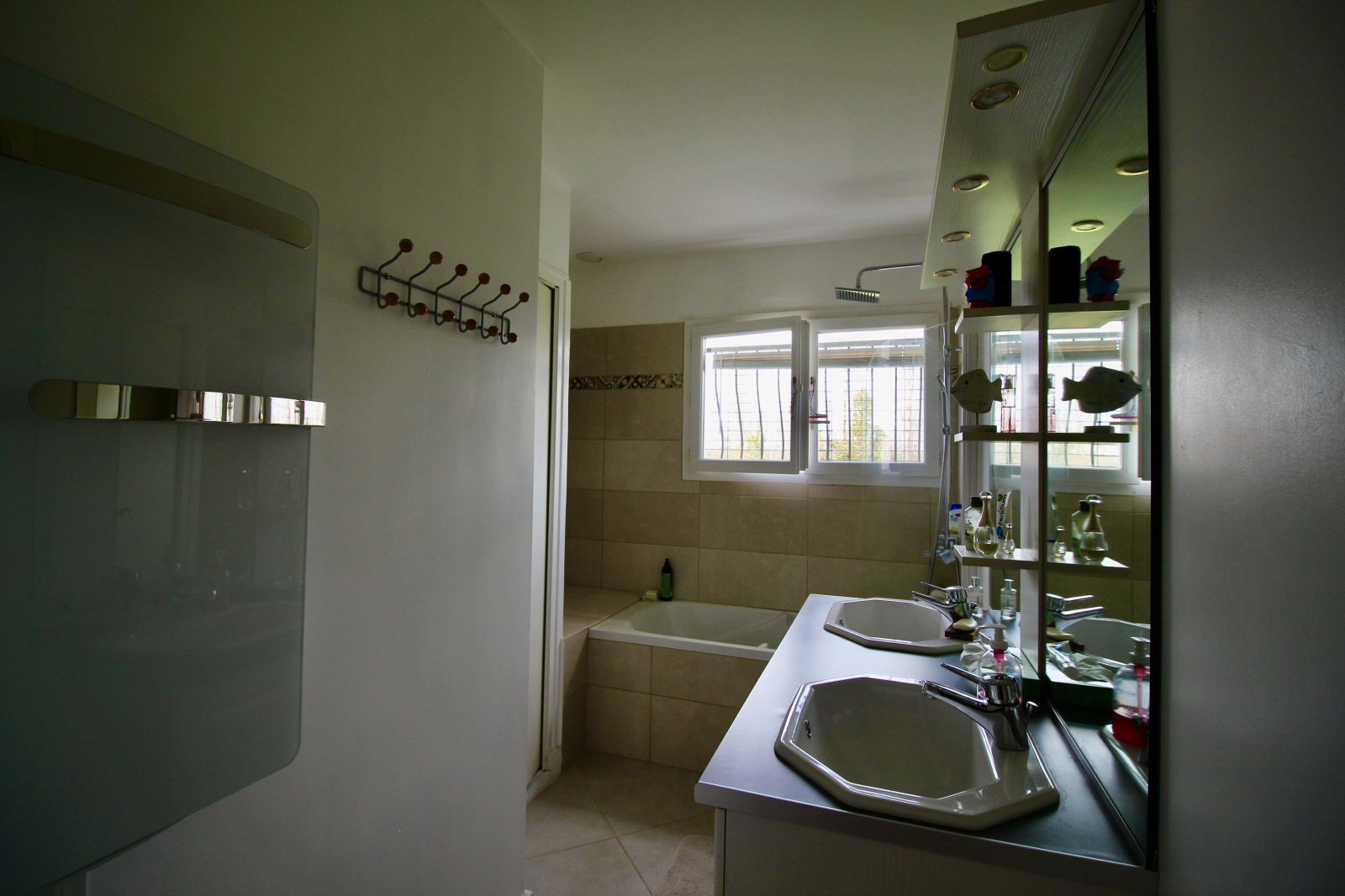 Le sous sol est en partie aménagée et reçoit deux chambres supplémentaires et une salle d'eau et le reste sert au stationnement véhicules, buanderie et atelier.