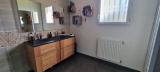 Elle se compose d'une entrée avec rangement, une belle pièce de vie avec cuisine ouverte aménagée et équipée (hotte, plaque, four). Côté nuit vous trouverez 3 chambres, une salle d'eau avec douche à l'italienne et un WC separé.