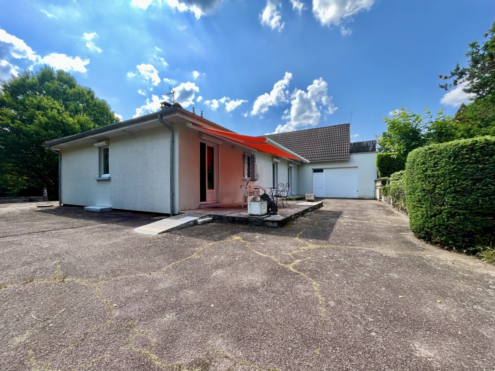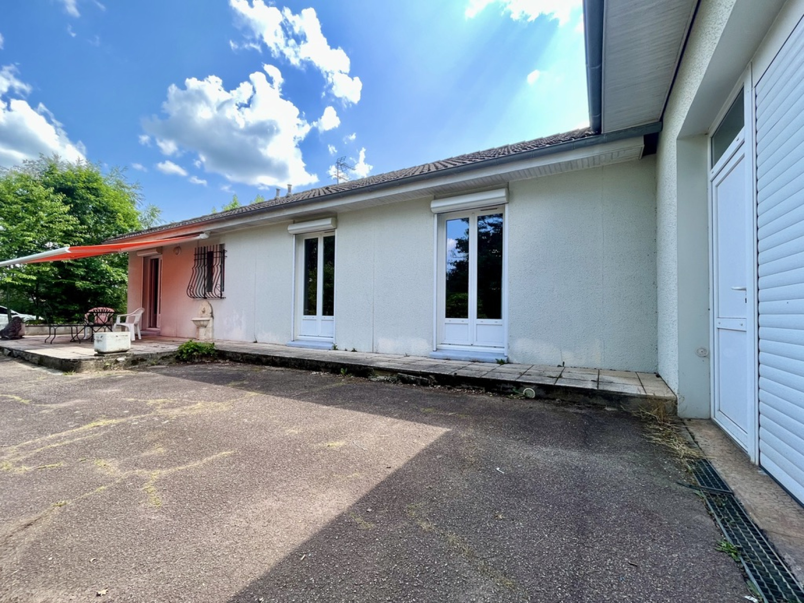 Voici une maison de plain-pied implantée sur une parcelle de terrain de plus de 3800m² arboré dans un environnement campagne et tout proche du bourg de Saint-Priest-Taurion. Cette maison de 120m² habitables propose une grande entrée avec rangement, un séjour salon avec une cheminée insert, une cuisine indépendante et son cellier attenant, trois chambres, une salle d'eau et un WC séparé.