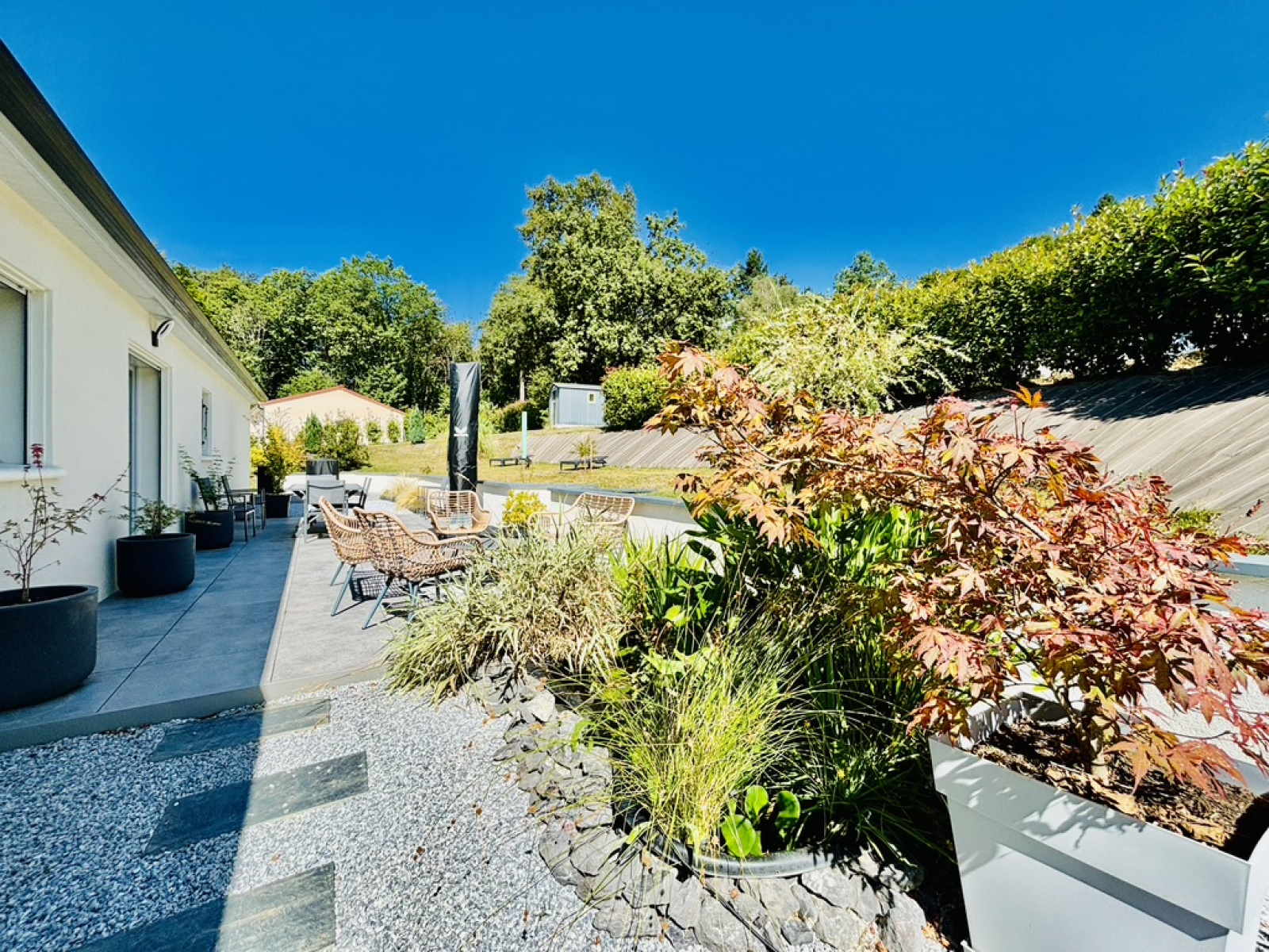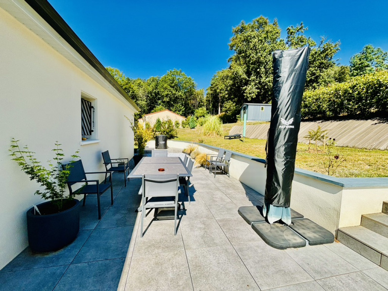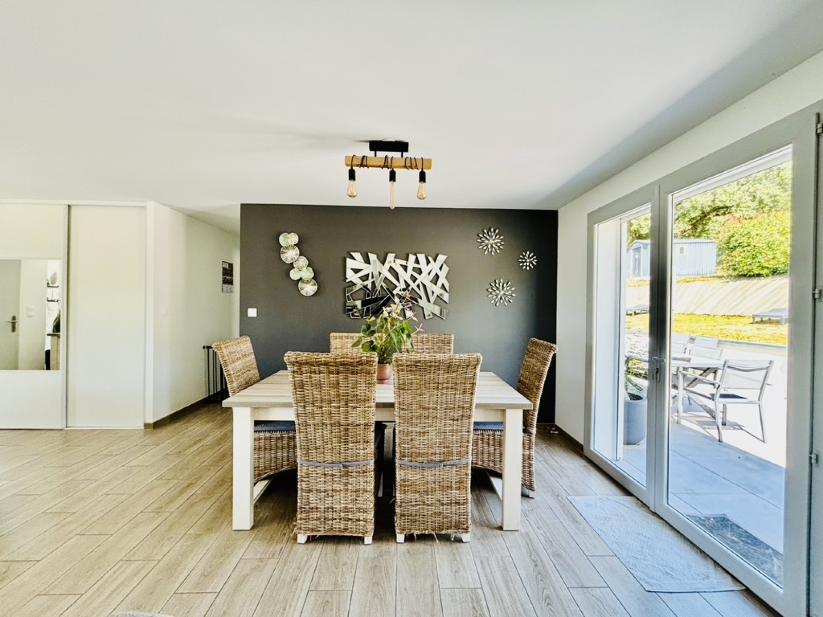 C'est dans un environnement campagne dans un lieu paisible que vous trouverez cette maison récente de 2017 de plain-pied de 100m² implantée sur plus de 1300m² de terrain.