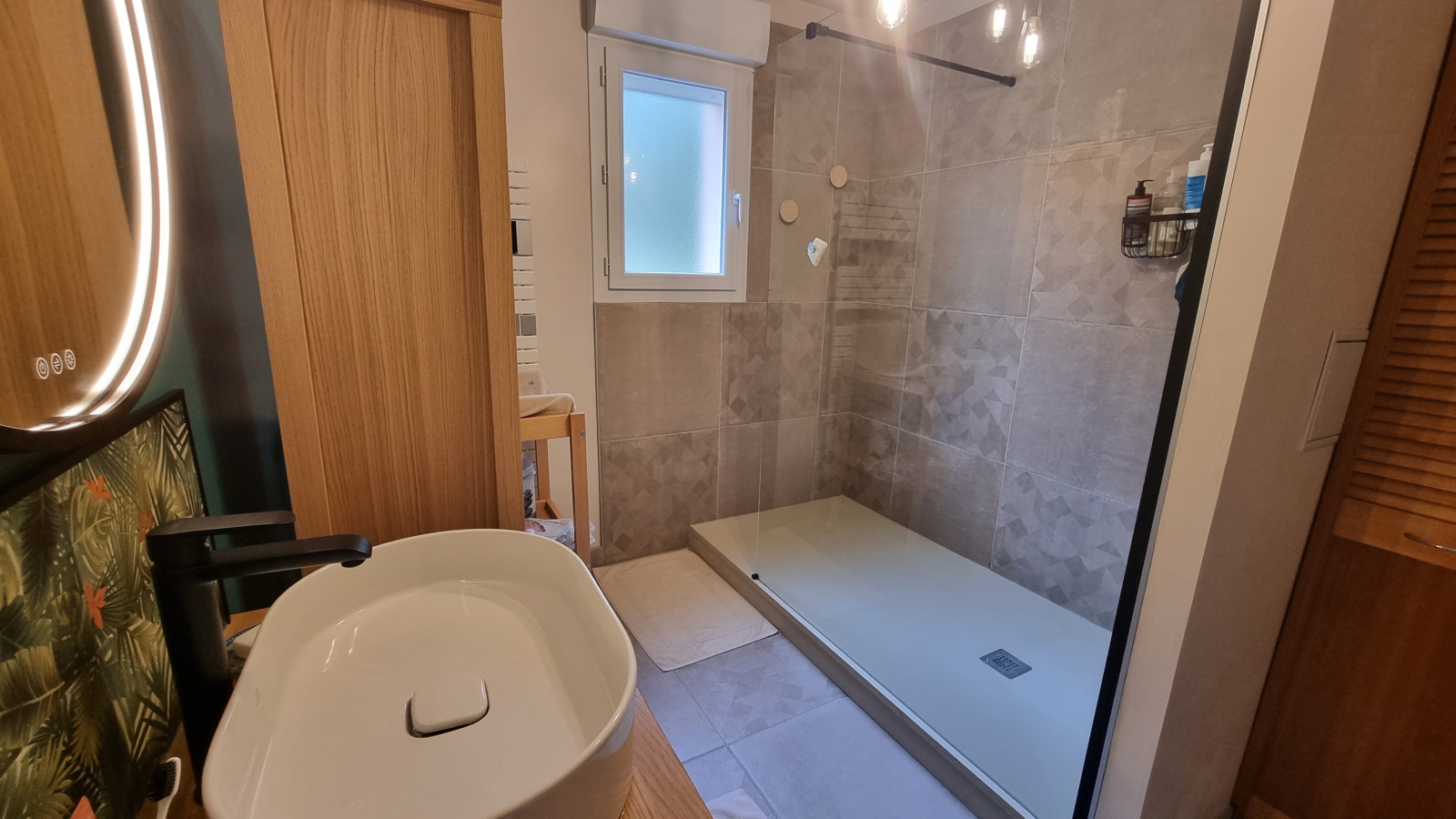 Cette maison est très lumineuse et bien rénovée. Elle dispose d'un garage double avec porte motorisée, d'un portail électrique et de volets roulants électriques.
