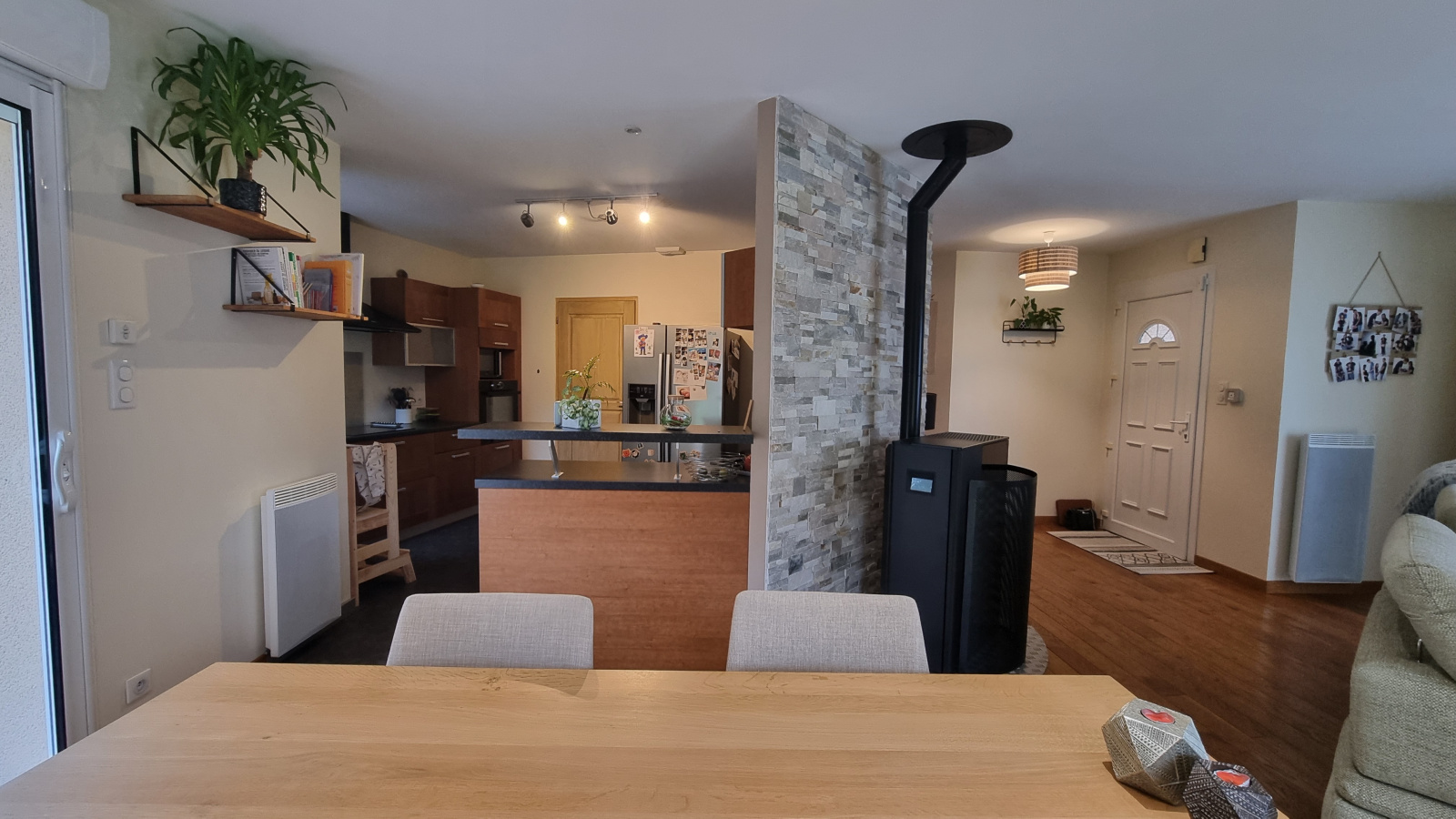 Toutes les huisseries en PVC double vitrage, le poêle à granulé est récent ainsi que les radiateurs du coin nuit et le chauffe eau thermodynamique. La rénovation énergétique est complète avec des panneaux photovoltaïques ce qui est un atout pour cette maison en plus de son environnement. Une vue dégagée et la tranquillité sont au rendez-vous sur cette maison.