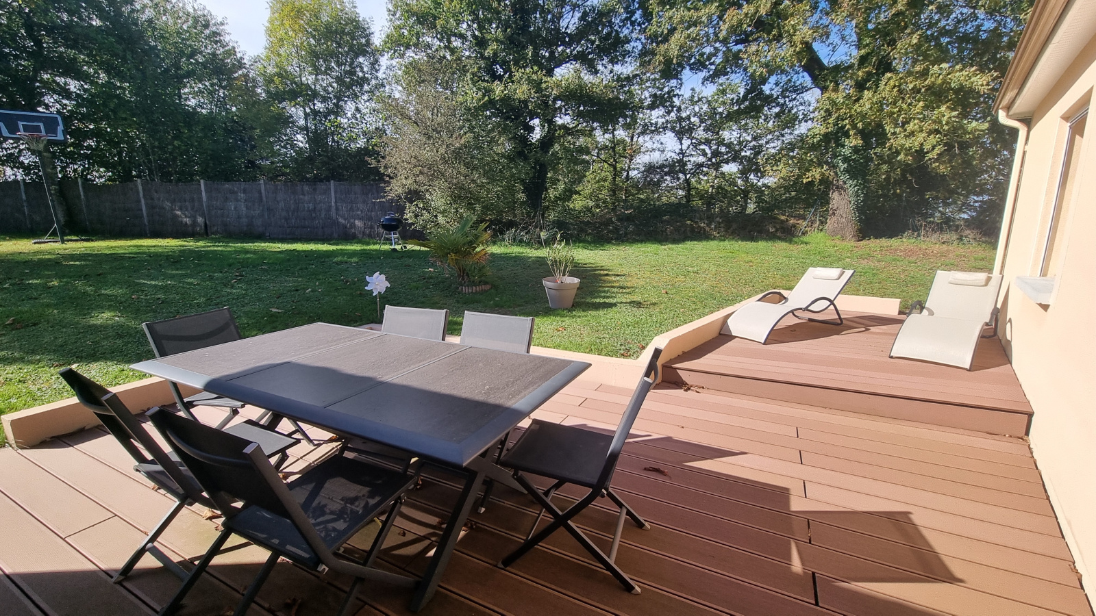 A l'extérieur vous disposez d'une allée goudronnée, d'un jardin privatif d'environ 1000m² entièrement clôturé avec une belle terrasse en composite et d'un abri de jardin sur dalle béton.