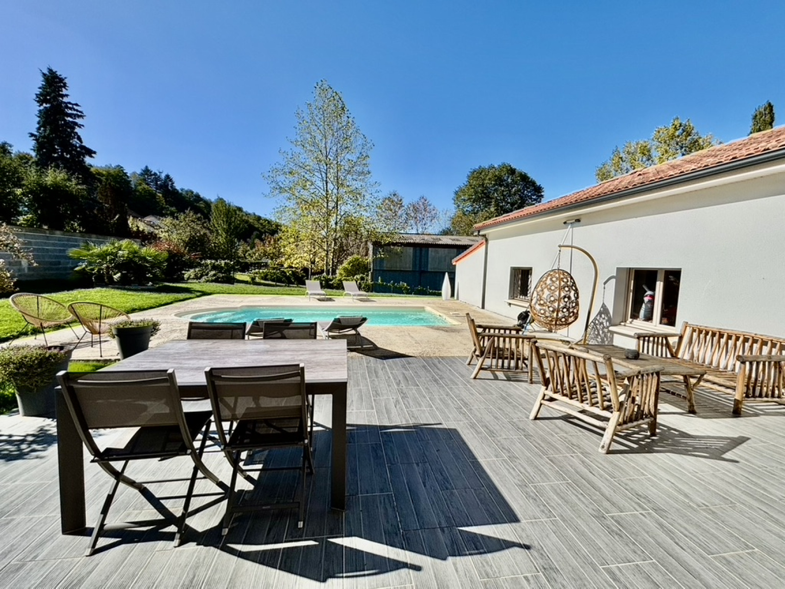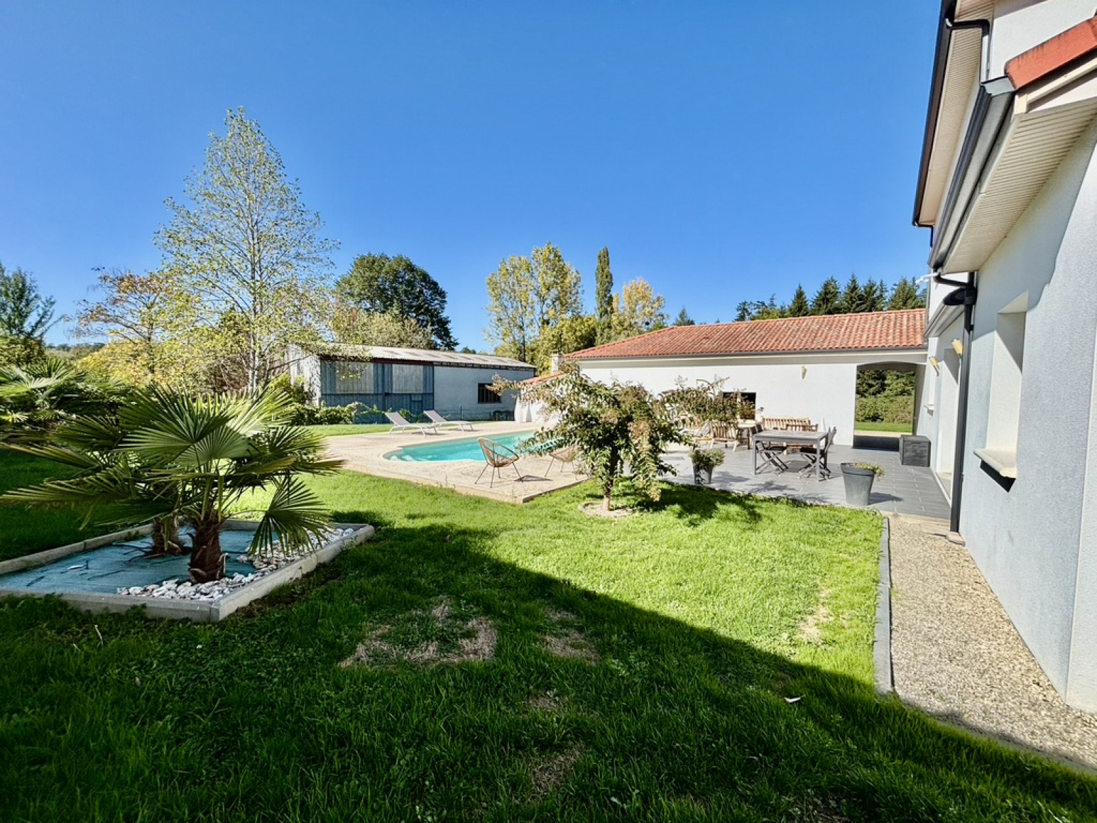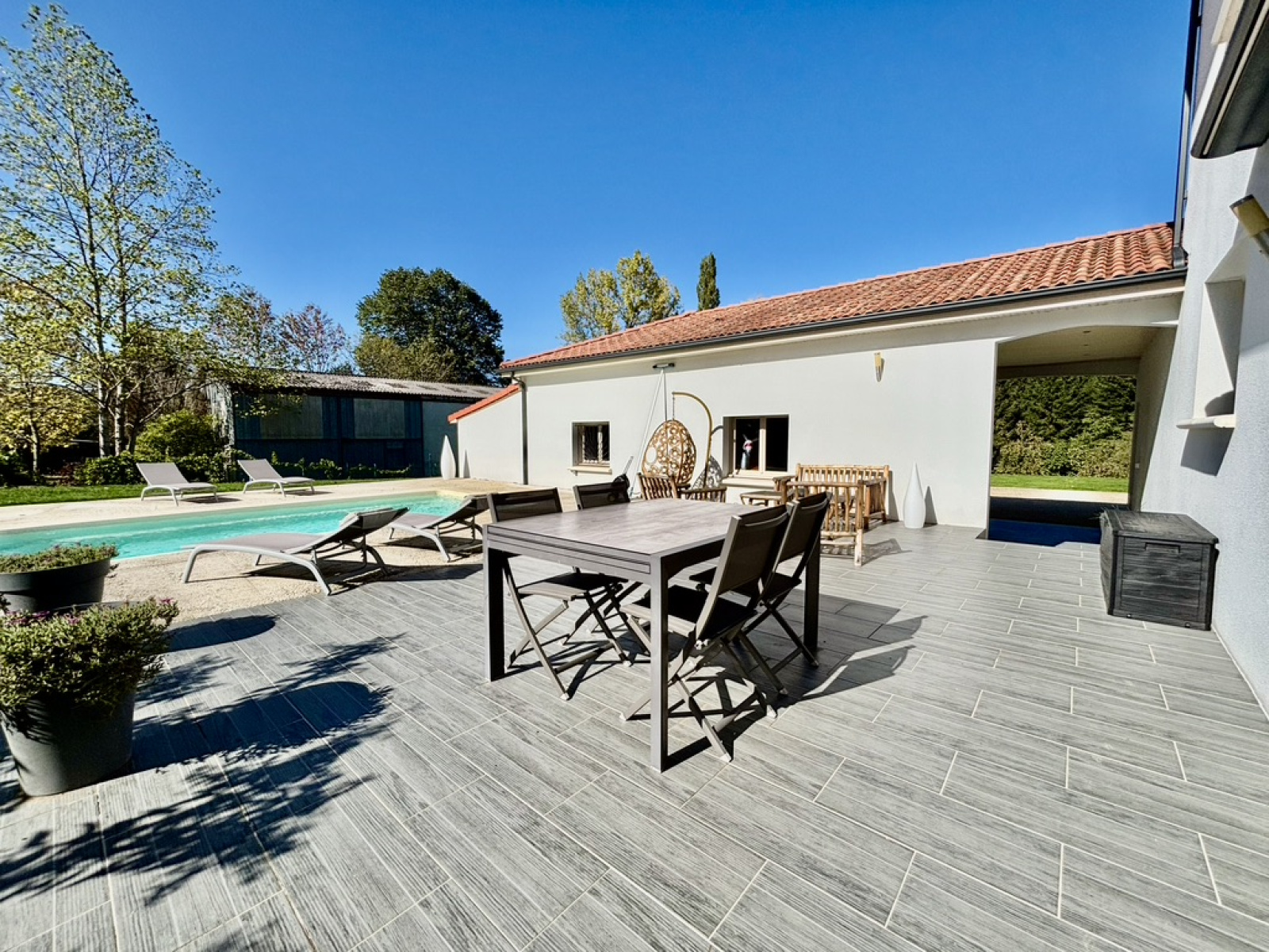 Voici une splendide villa de 2015 niché sur un parc arboré de 6611m² avec un verger, une mare, une partie boisé et un accès direct à la Vienne au bout du jardin.