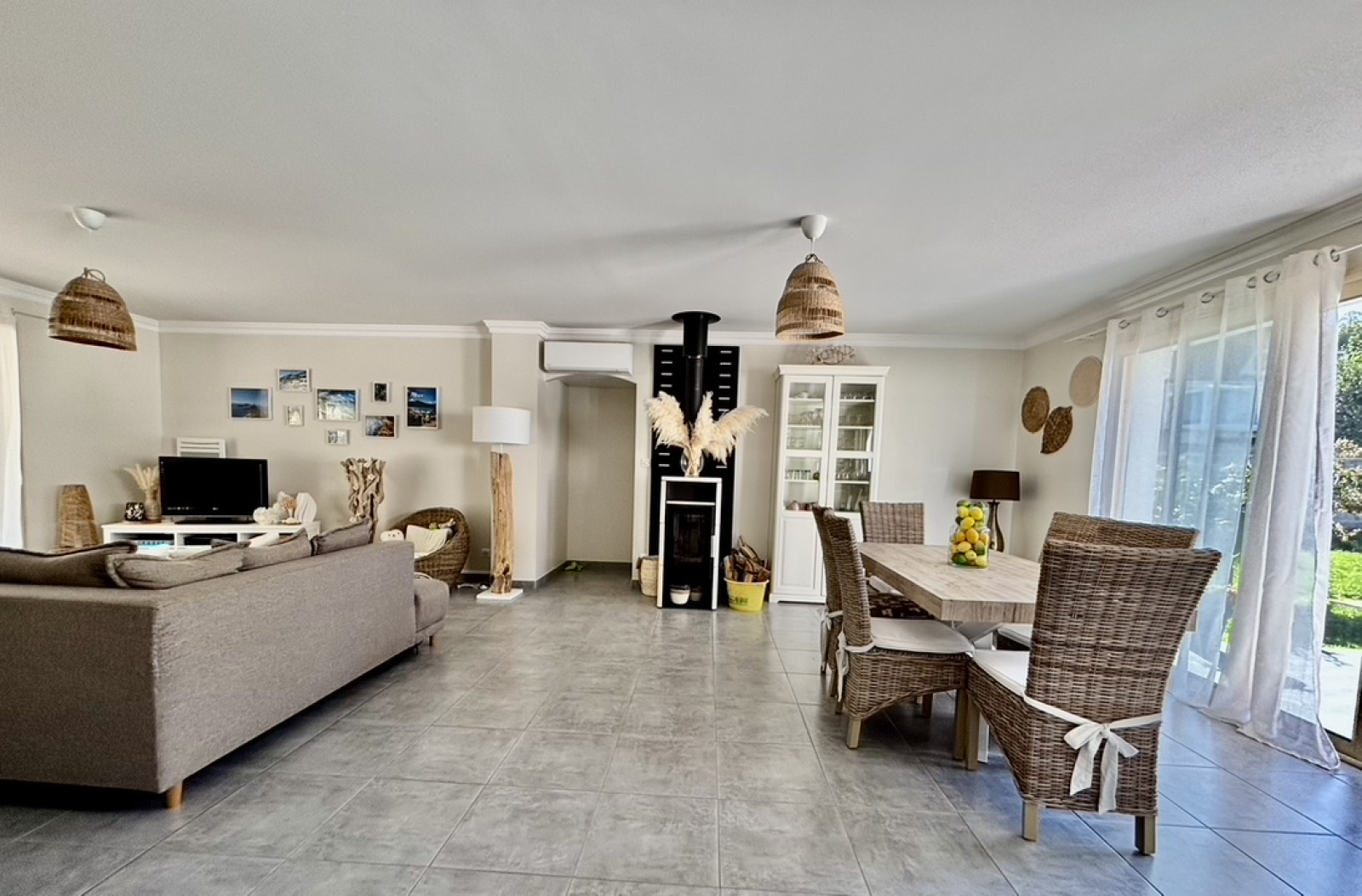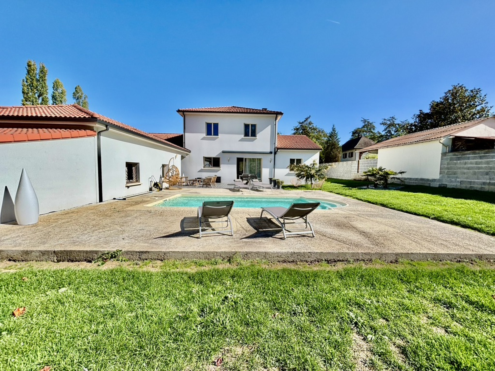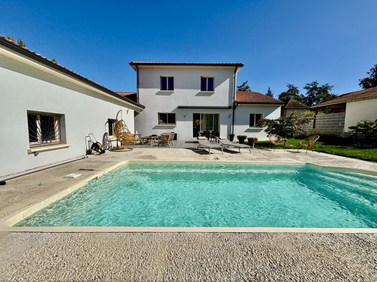 La maison a beaucoup de prestations de qualité et de confort de vie : chauffage électrique et poele à bois, climatisation réversible dans la pièce de vie, poele à bois, store électrique sur terrasse, piscine chauffée, double vitrage PVC et ALU, volets électriques, portes de garages automatisées, portail électrique, belle cour empierrée.
