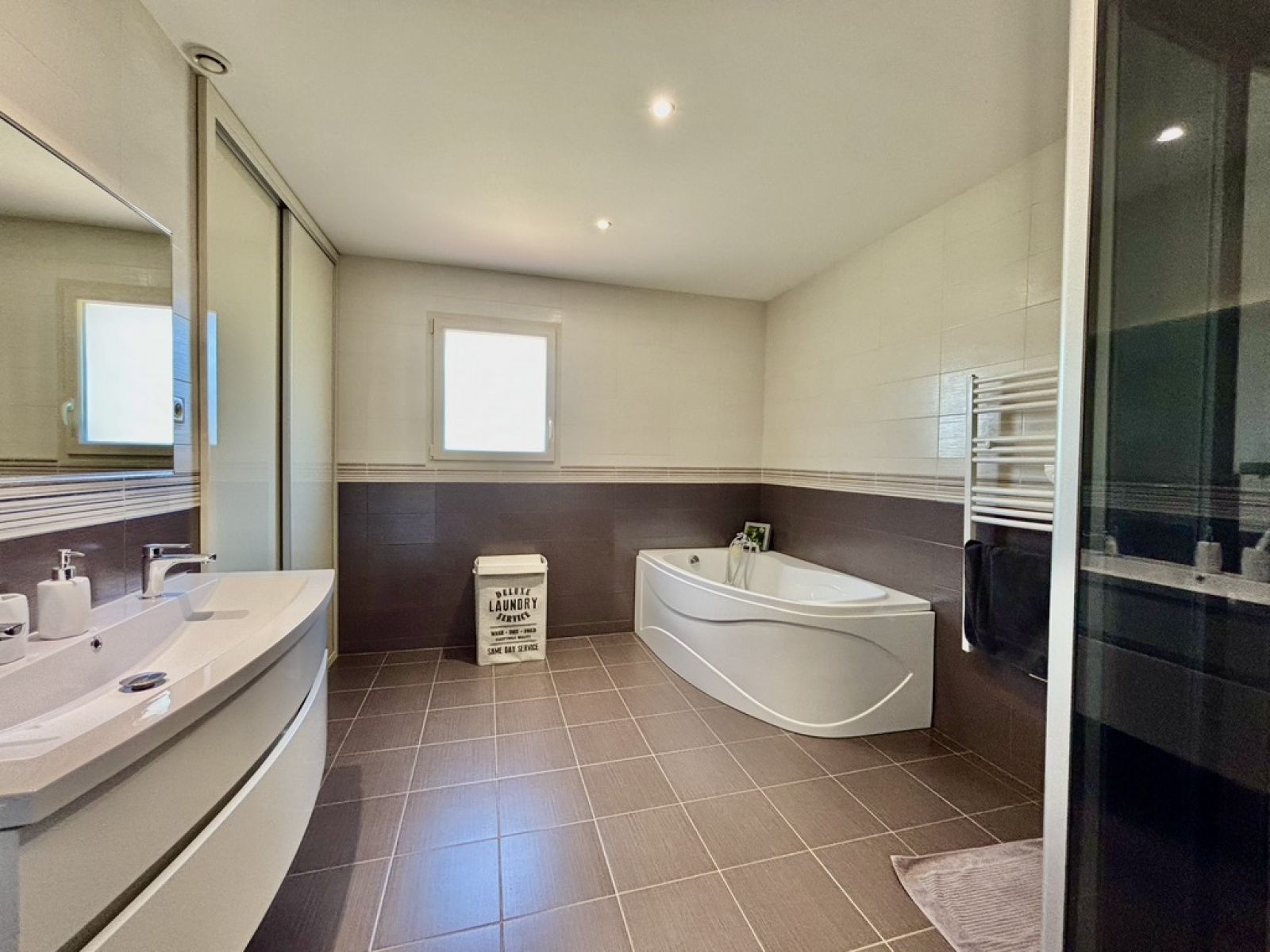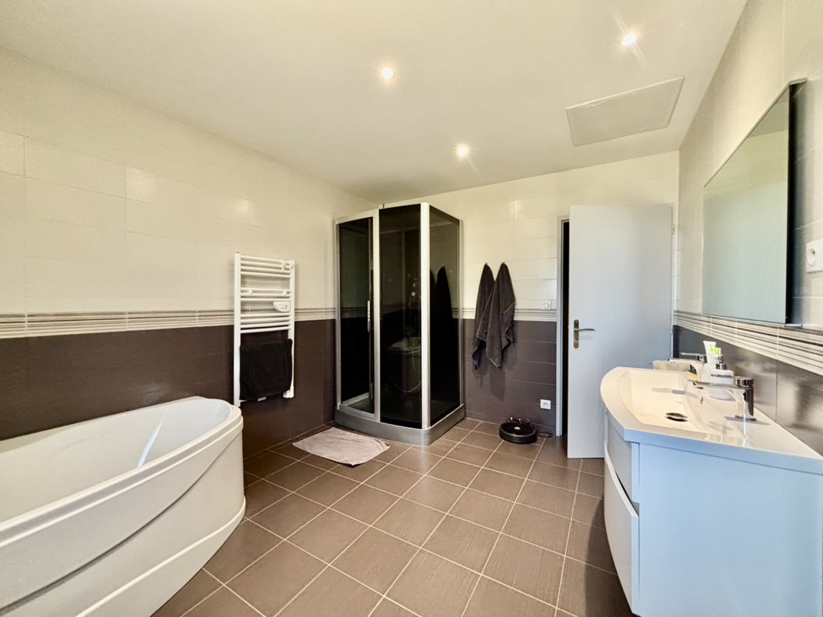 Vous serez charmés par son état impeccable et ses prestations de qualité. La maison dispose d'une entrée avec des rangements, un WC séparé avec lave-main, une belle pièce de vie avec cuisine aménagée et équipée ouverte de plus de 62m², une buanderie et un bureau. Côté nuit, vous aurez une belle suite parentale en rez-de-chaussée avec un dressing aménagée et une salle d'eau avec wc, fenêtre et douche à l'italienne.